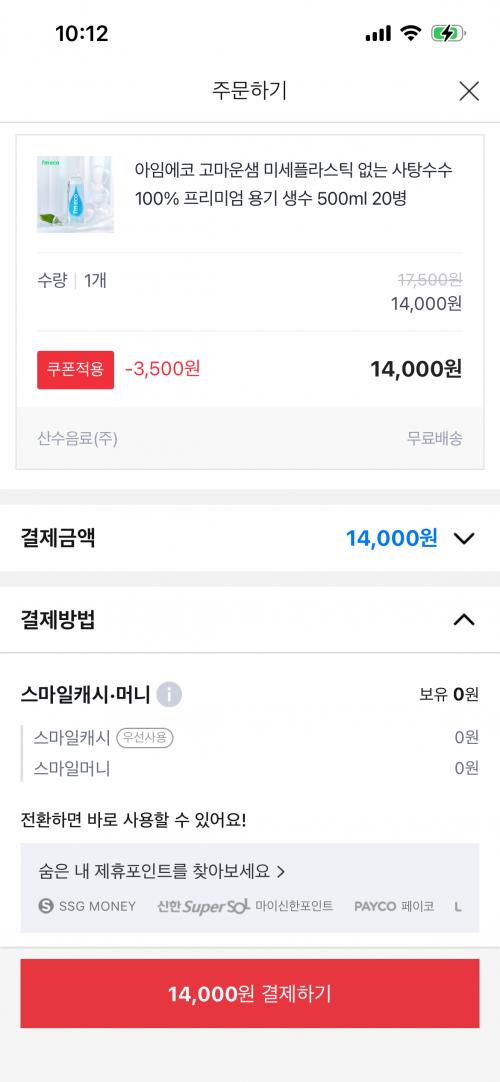 [옥션] 아임에코 미세플라스틱x 사탕수수 용기 생수 500ml * 20병 (14,000원/무료 ) > 국내핫딜