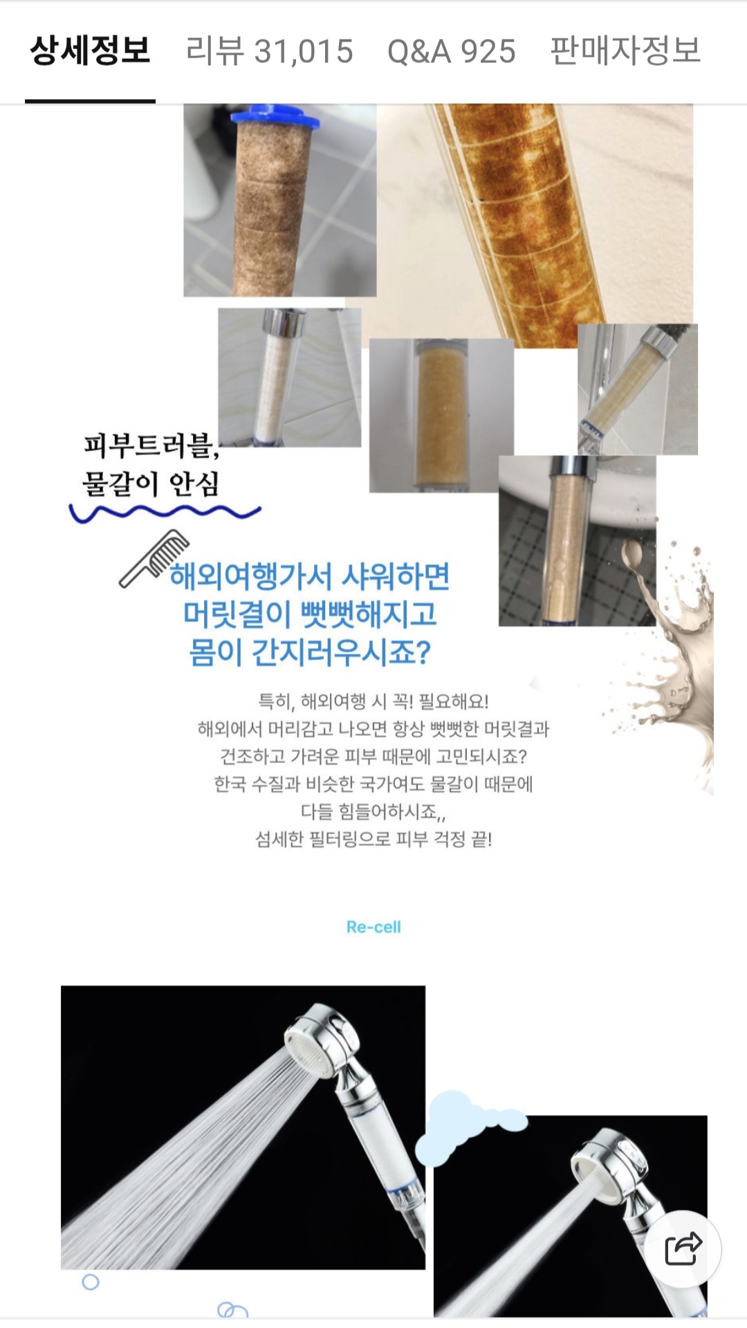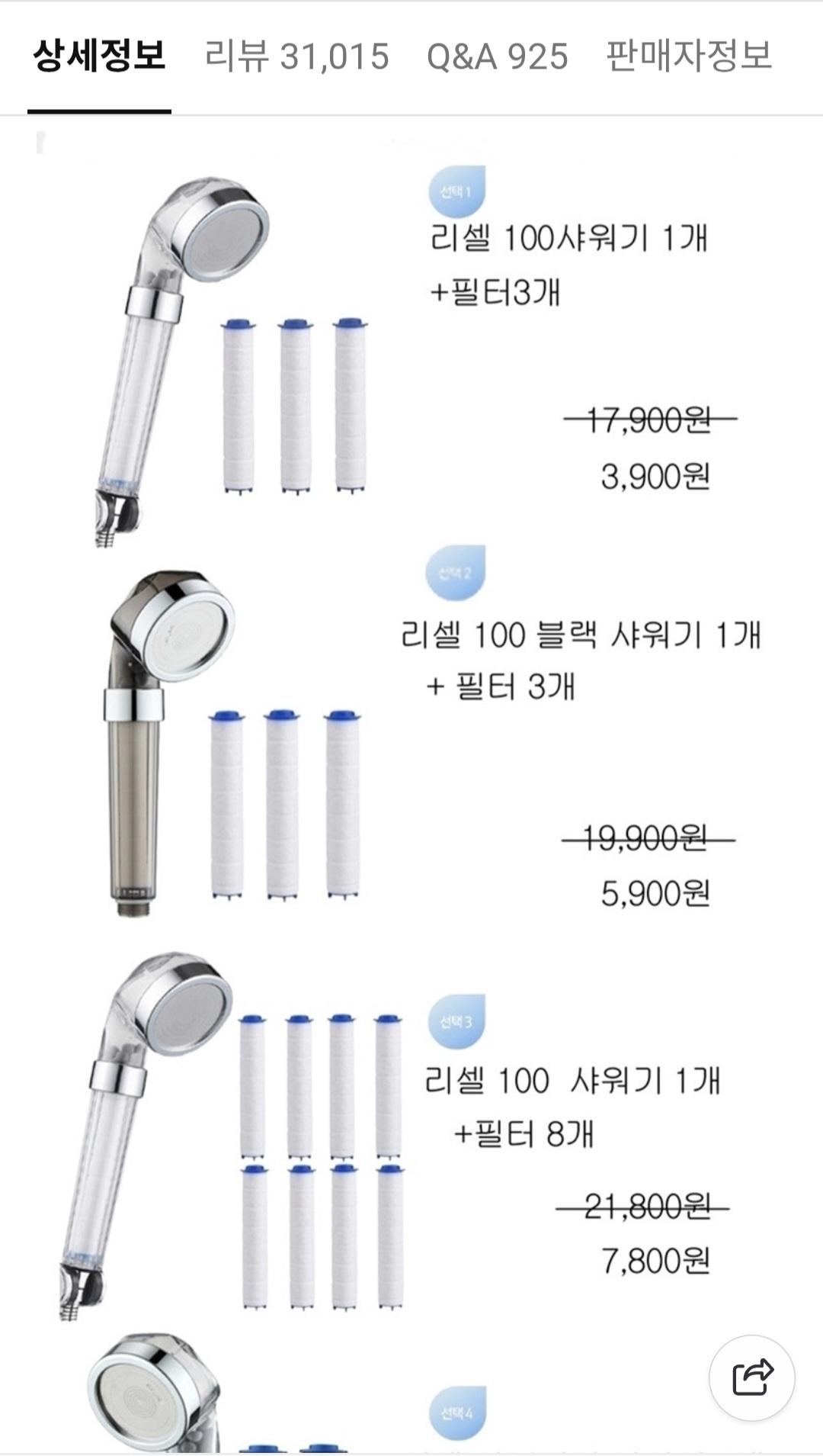 [쇼핑몰] 상품명과 [네이버]리셀NEW 100 수압상승 녹물제거 샤워기(필터포함)+필터 3개 3개 외 다양~(3400원/무배)구성품 (가격/배송비)