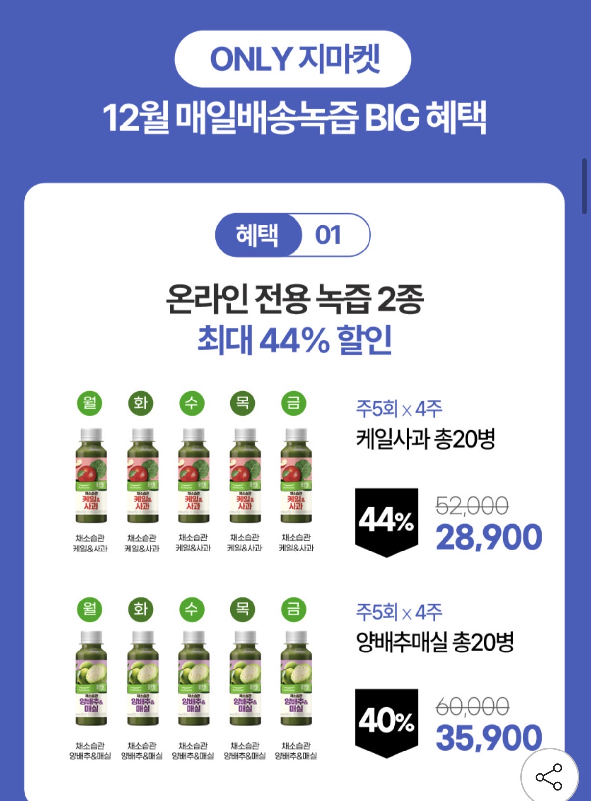 [지마켓] 풀무원녹즙 케일사과 130ml 20병 (28,900원/무배) > 국내핫딜