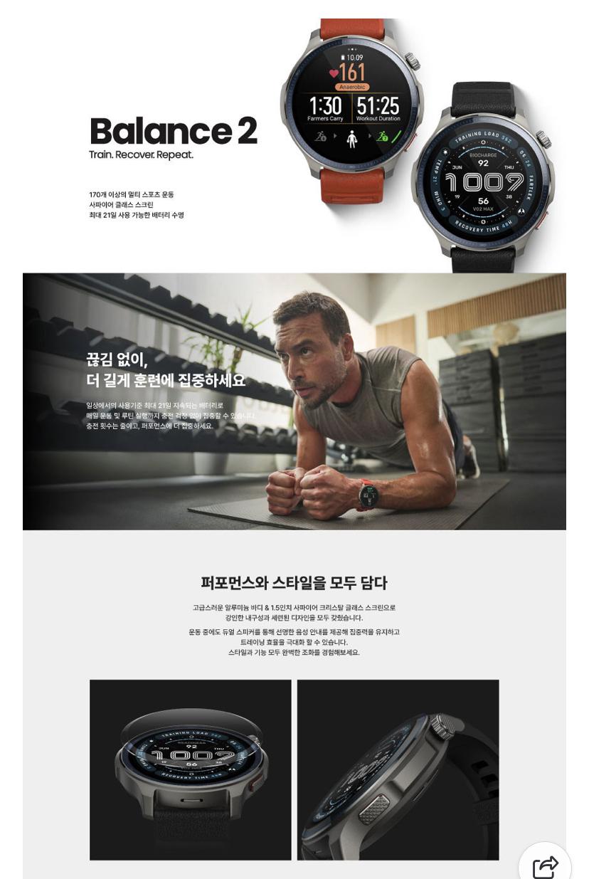 [네이버] 어메이즈핏 밸런스2 GPS 스마트워치 블랙 47mm (389,000원/무료) > 국내핫딜