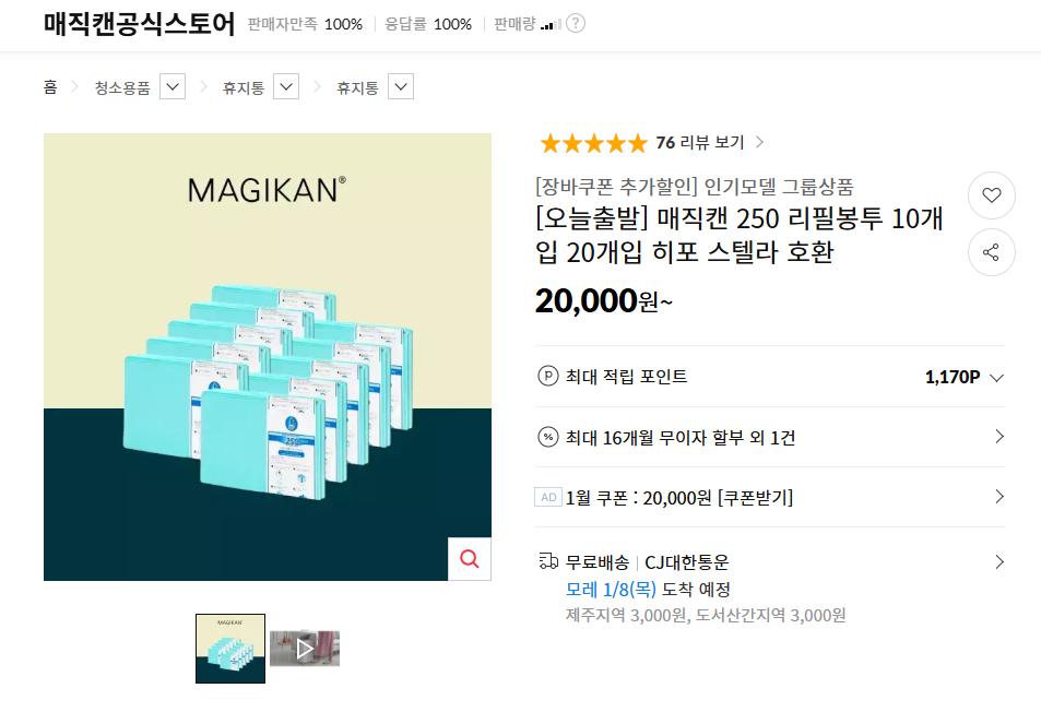 46,920원 나오네요 휴지통 외에 리필도 할인중이고