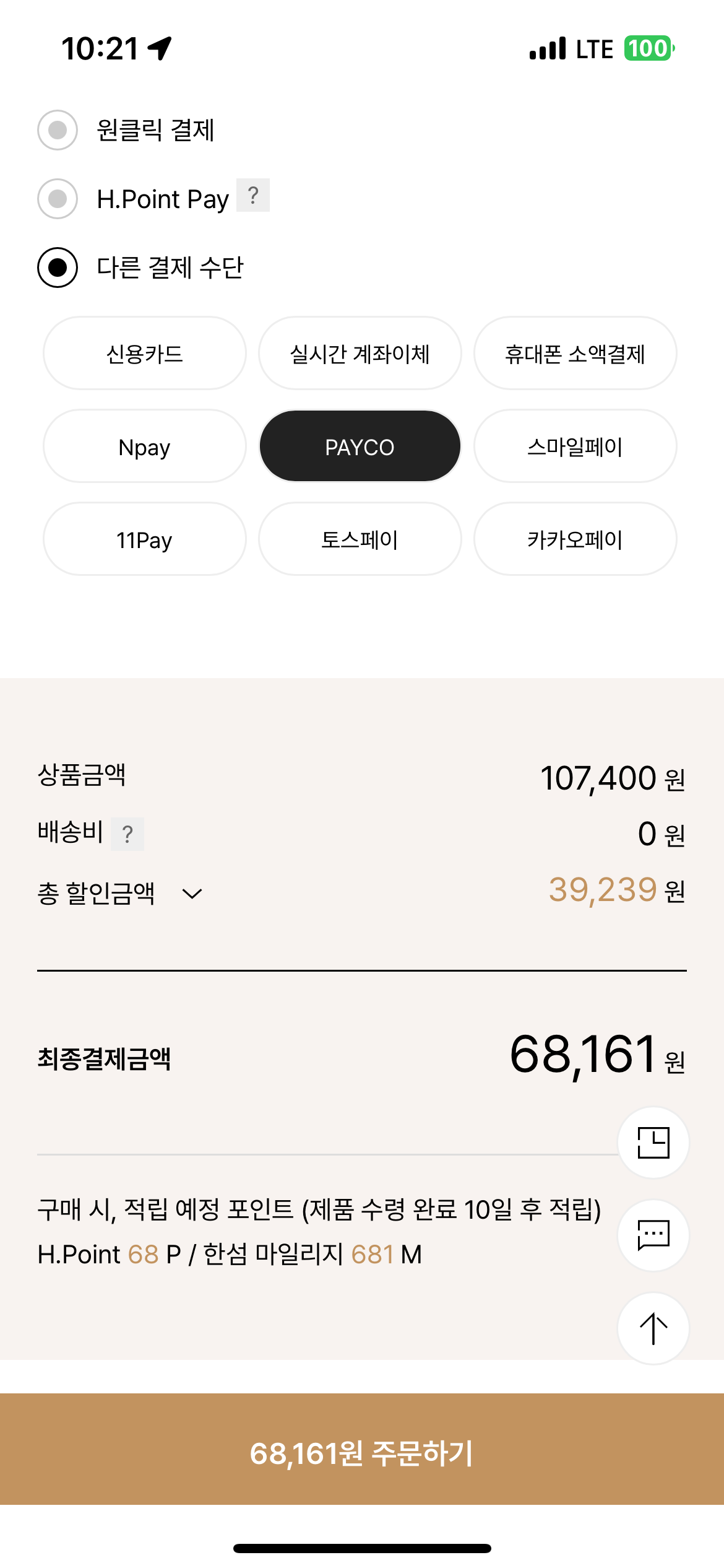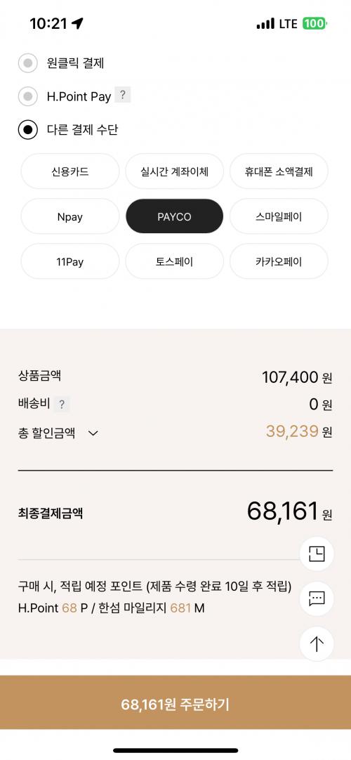타미남성 10%, 뉴베네핏15%, 14,000P 별도다운받아서 적용하면 최종가 68161원 가격 나오네요
