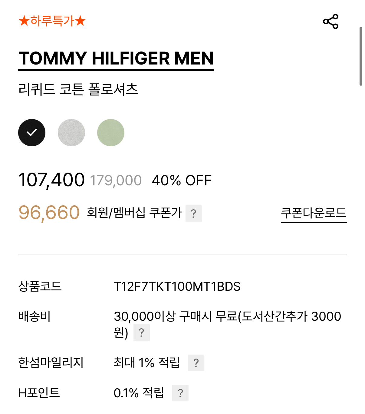 타미 폴로셔츠 색상 세가지이고