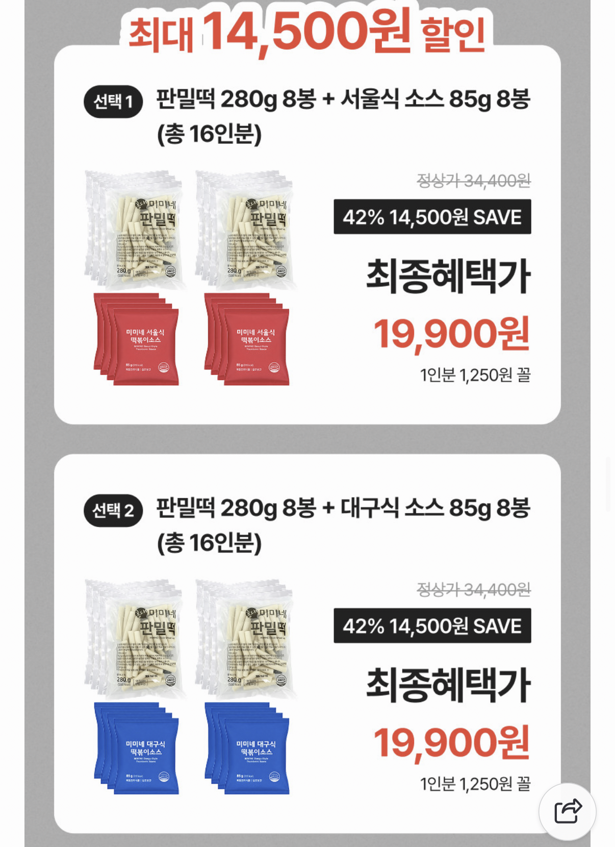 [네이버] 미미네 갓성비 떡볶이 모음 (19,900원~/무료)