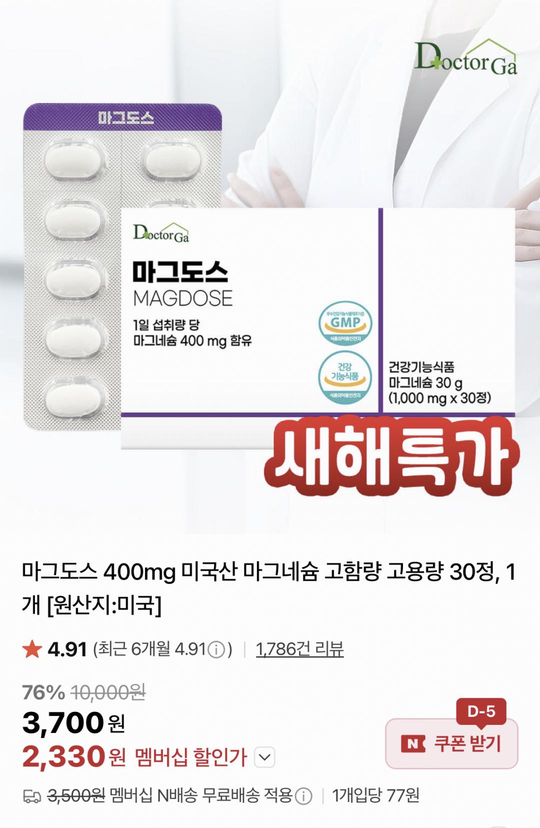 [네이버] 마그도스 400mg 마그네슘 30정 (2,330원/네맴무배)