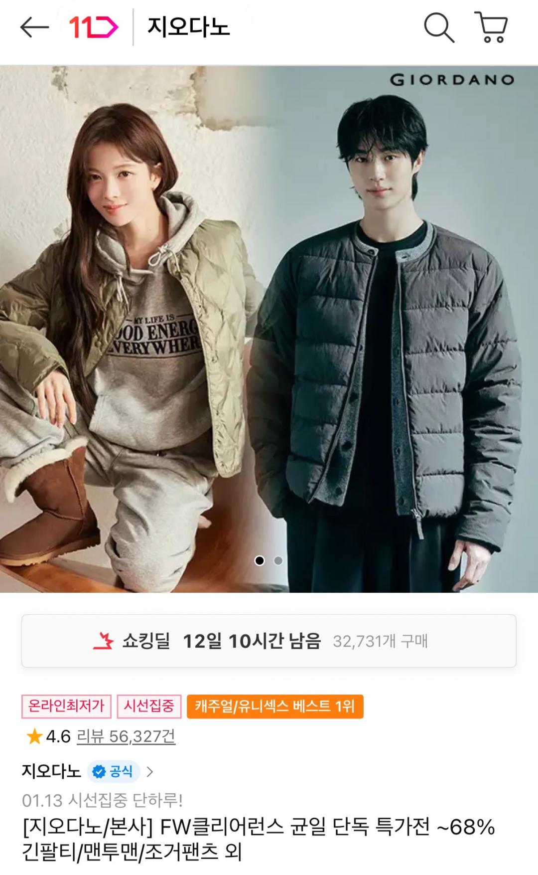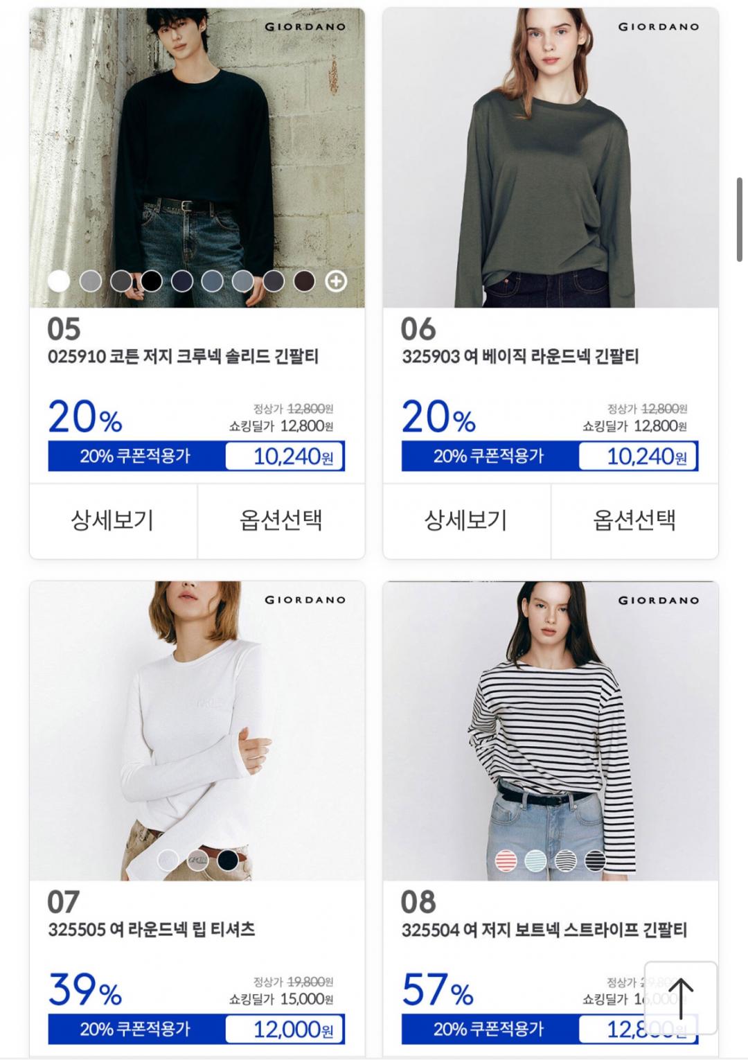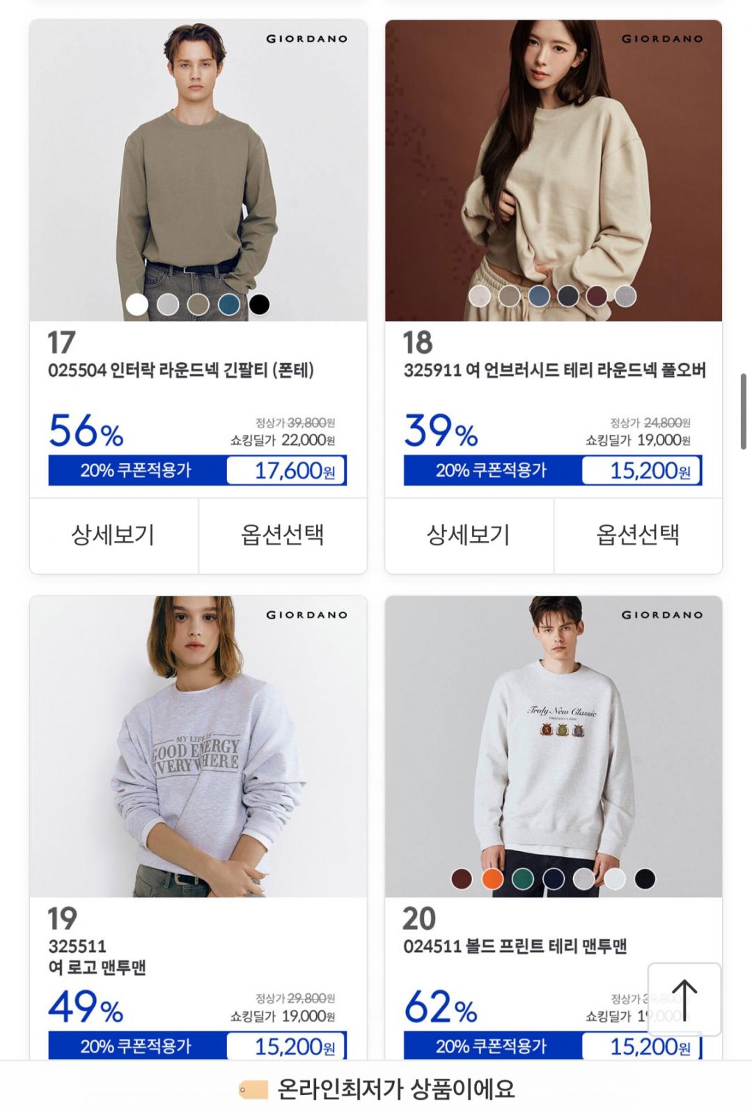 [11번가] 지오다노 FW 클리어런스 긴팔티/맨투맨/조거팬츠 외 (9,600원~/무료) > 국내핫딜