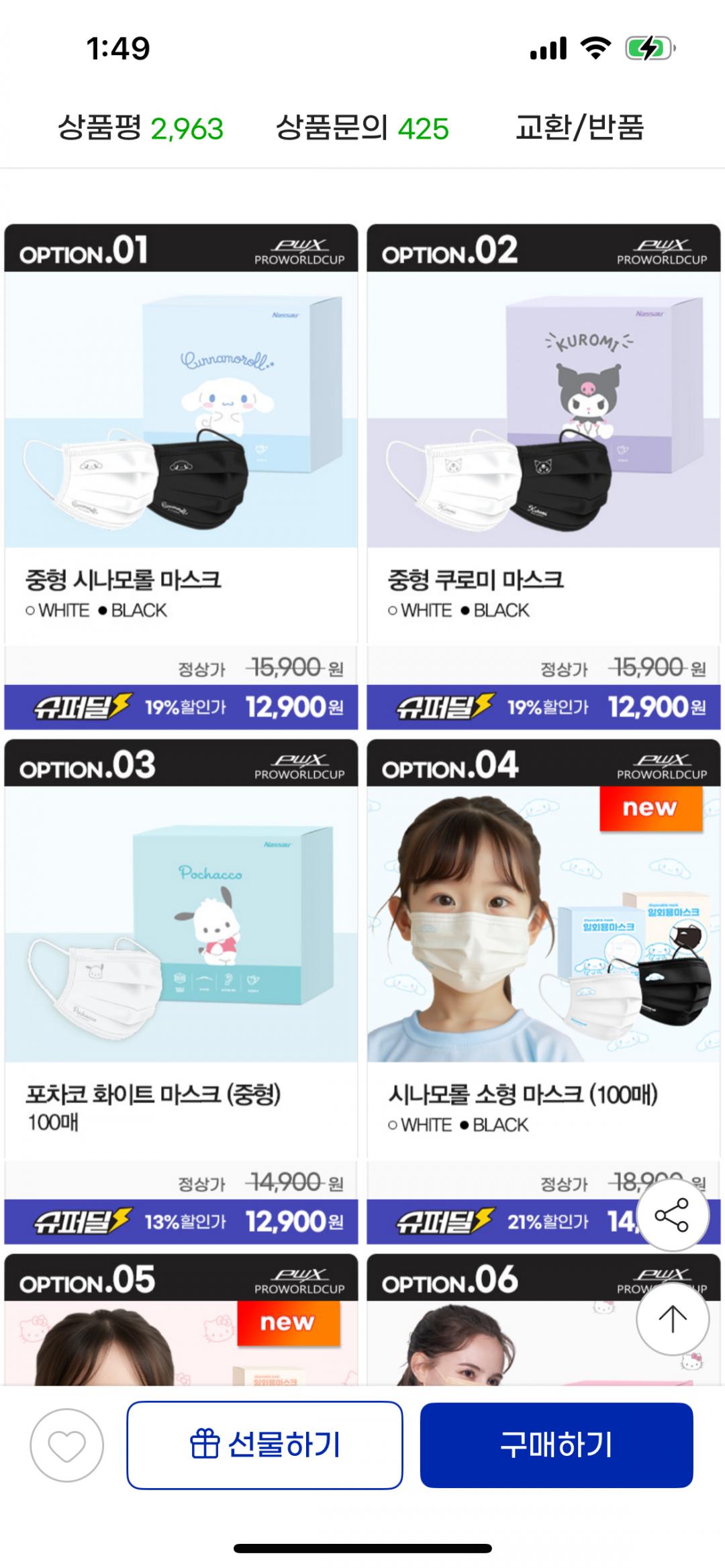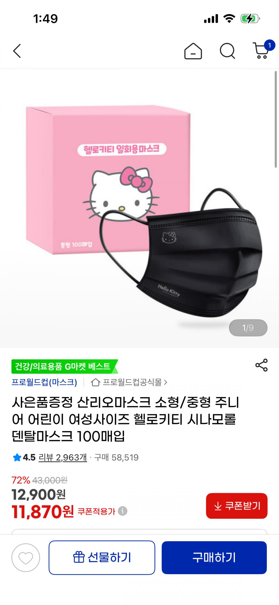 일반 기본 마스크 등등 종류별로 다양하게 할인하고 있습니다!