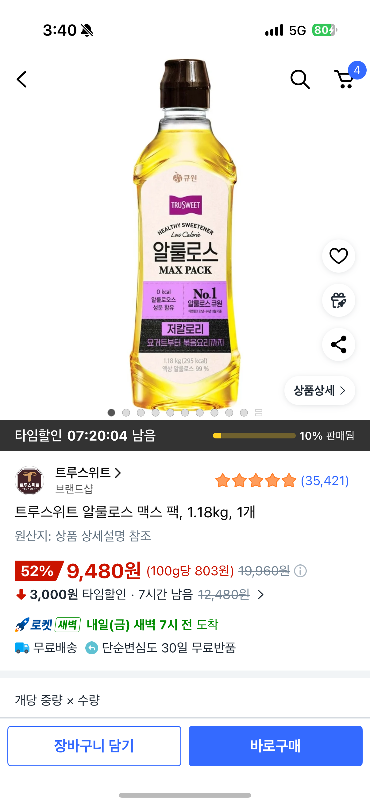 내일 바로 받을 수 있으니 알룰로스 사실거면 괜찮을 것 같습니다
