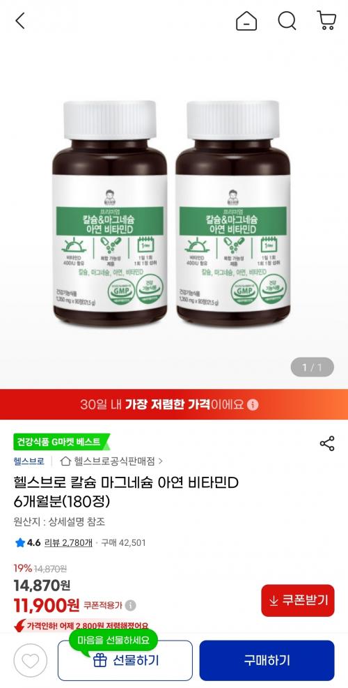 [지마켓] 칼슘 마그네슘 아연 비타민D 6개월분(180정) (11,900원/무배) > 국내핫딜