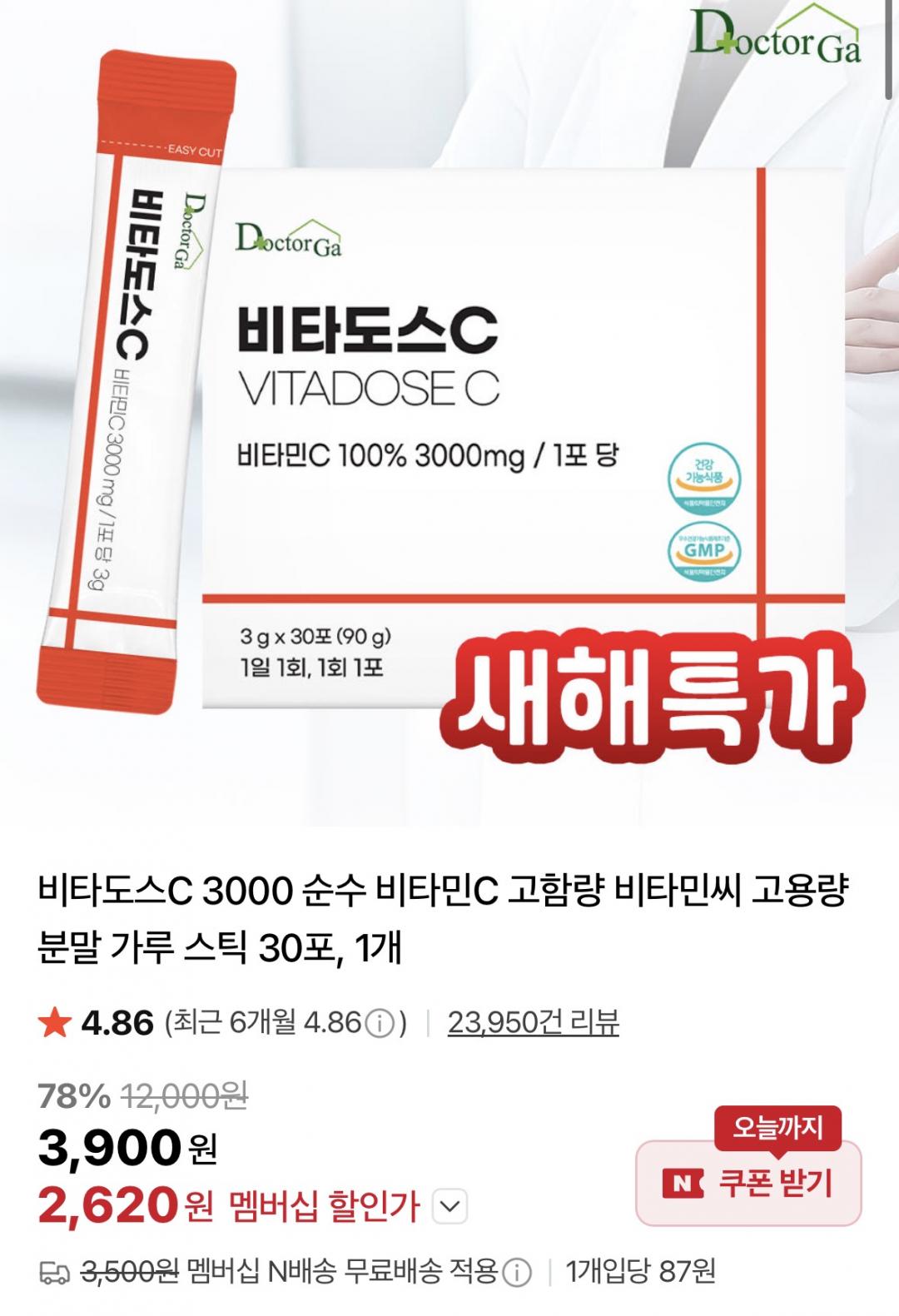 [네이버] 비타도스C 3000 순수 비타민 C 고용량 분말 가루 스틱 30포 1개 (2,620원/네멤무료) > 국내핫딜