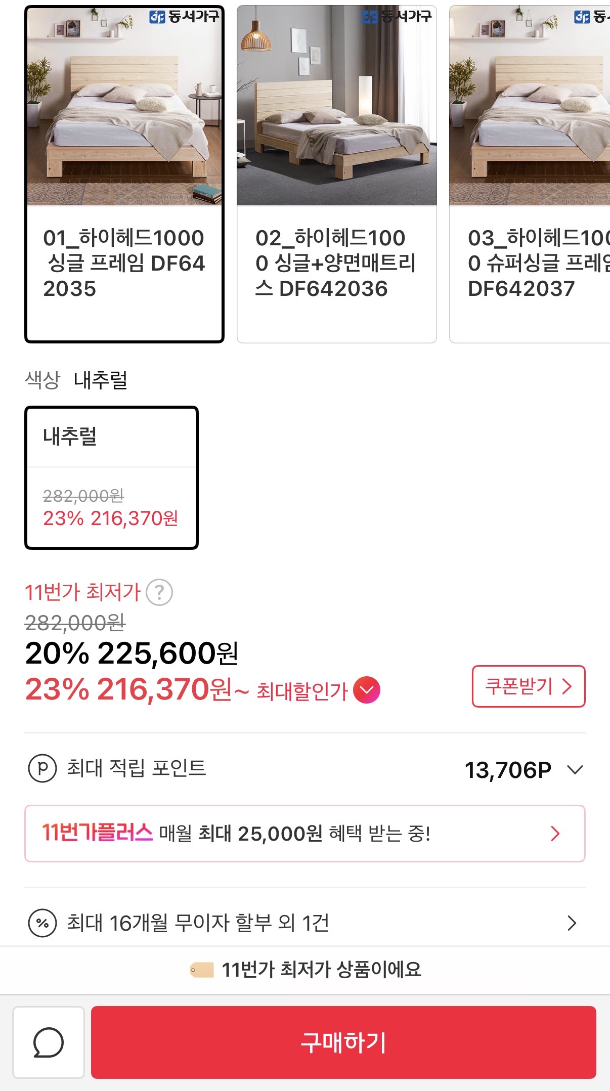 [11번가] 동서가구 패밀리 하이헤드 침대시리즈 (216,370원~/무료) > 국내핫딜