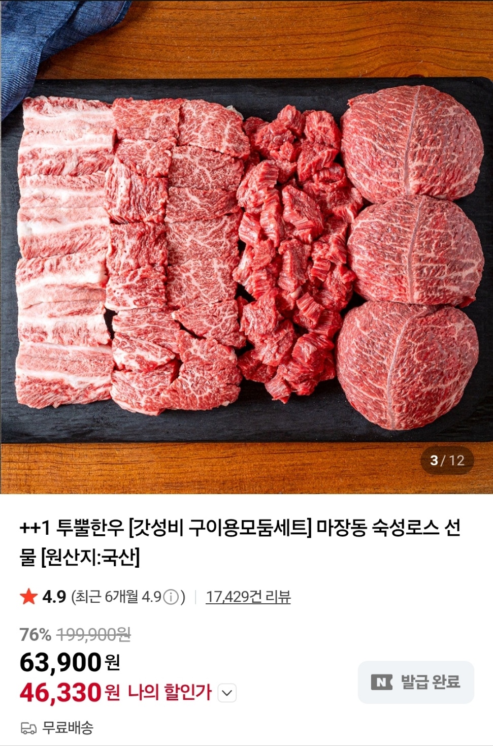 요즘 정육점 기준 100g당 만원 훌쩍 넘는거 생각하면 나쁘지 않네요