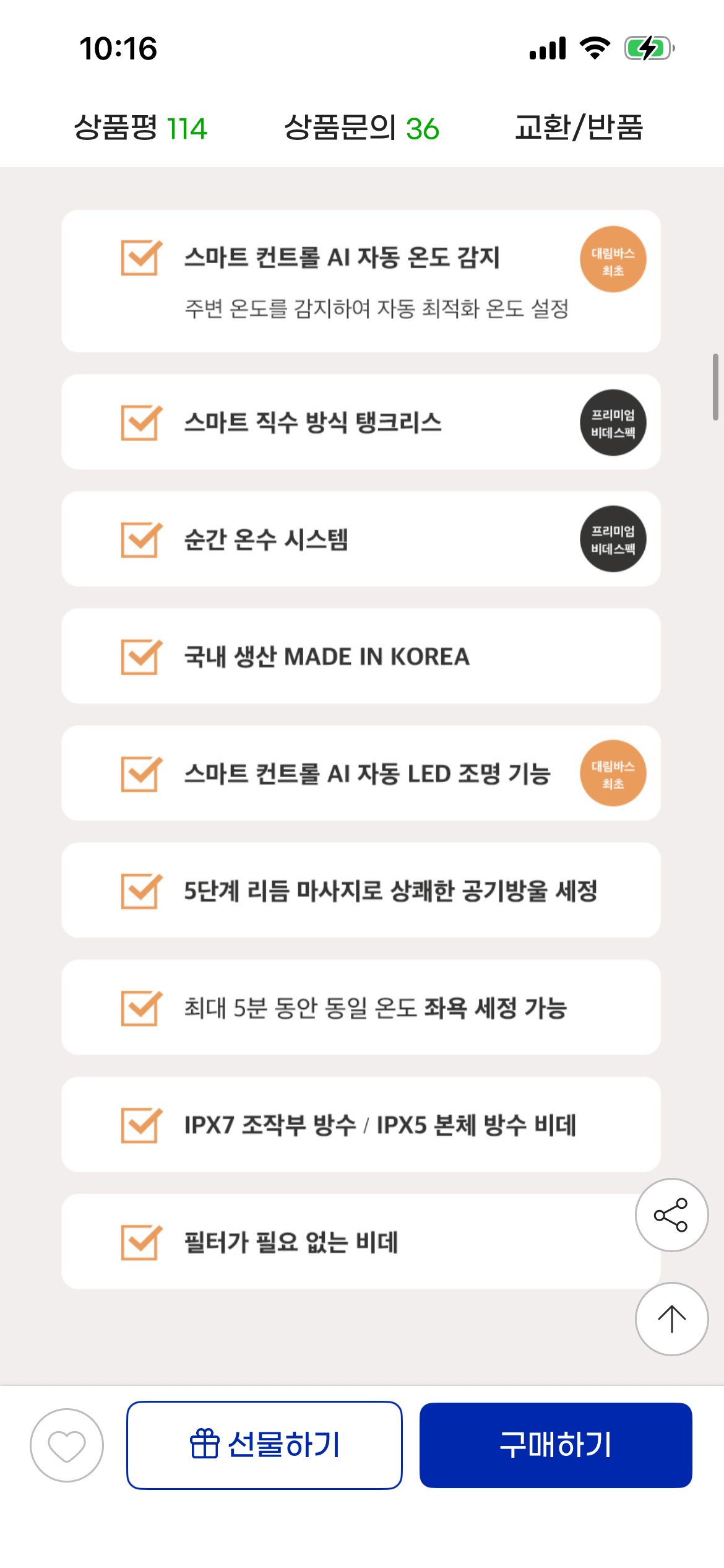 [지마켓] AI스마트 컨트롤 완전 직수 순간온수 방수 리모컨 비데 (189,000원/무료) > 국내핫딜