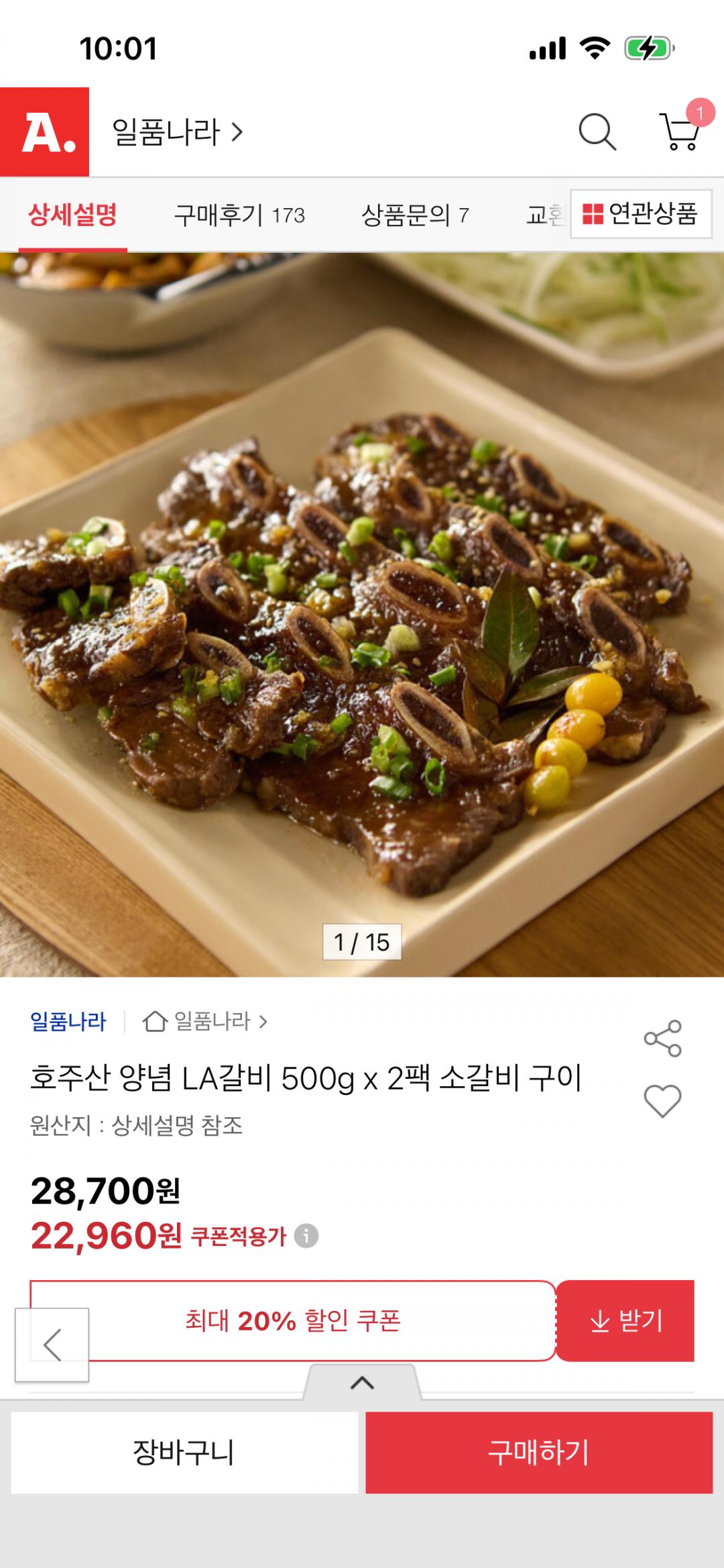 [옥션] 호주산 양념 LA갈비 500g x 2팩 소갈비 구이 (22,960원/무배) > 국내핫딜