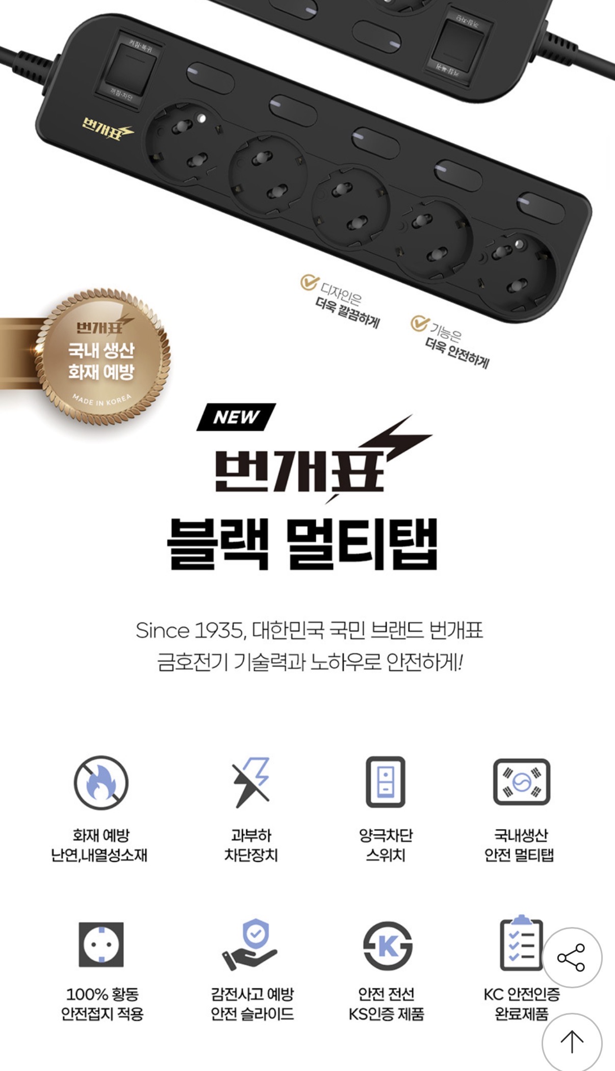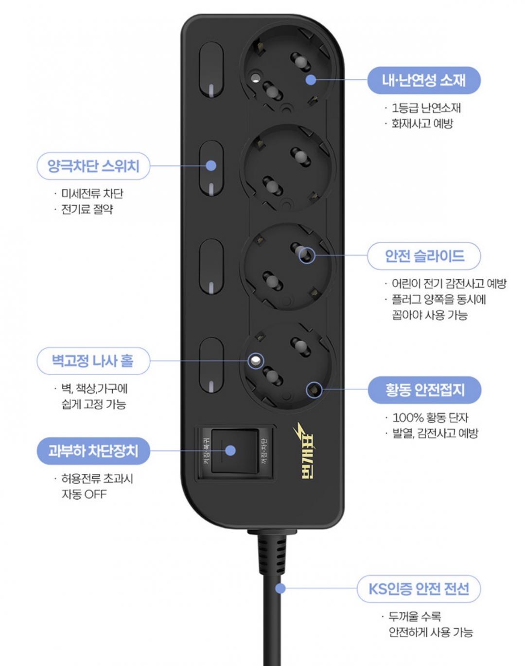 [지마켓] 국산 과부하 차단 안전 접지 블랙 멀티탭2~6구 1.5/3/5m(14,370원/무배) > 국내핫딜