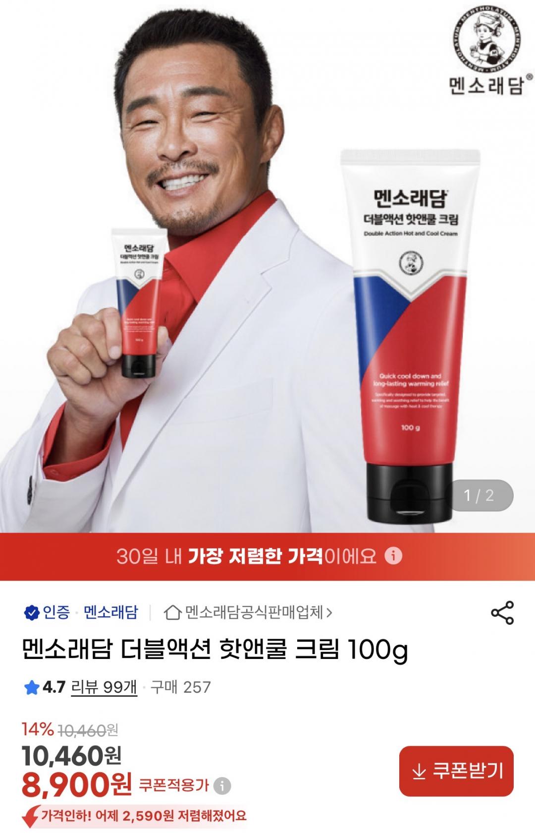 액체형 파스로 유명한 멘소래담 핫앤쿨 크림입니다