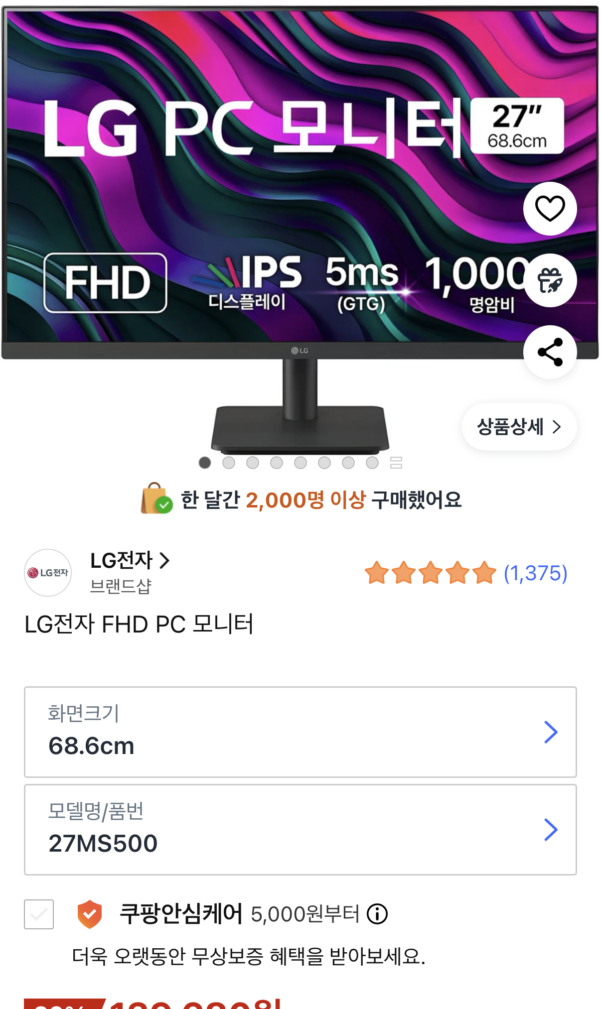 [쿠팡] 엘지 PC모니터 27MS500 (139,680원/무)