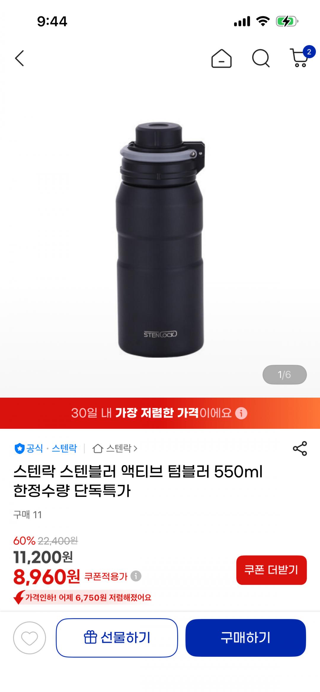 [지마켓] 스텐락 스텐블러 액티브 텀블러 550ml (8,960원/무료)