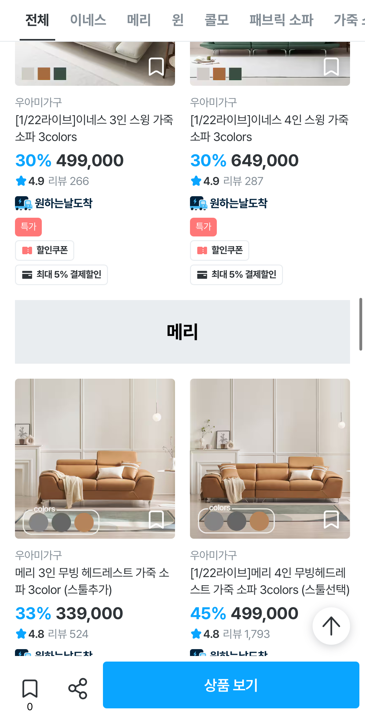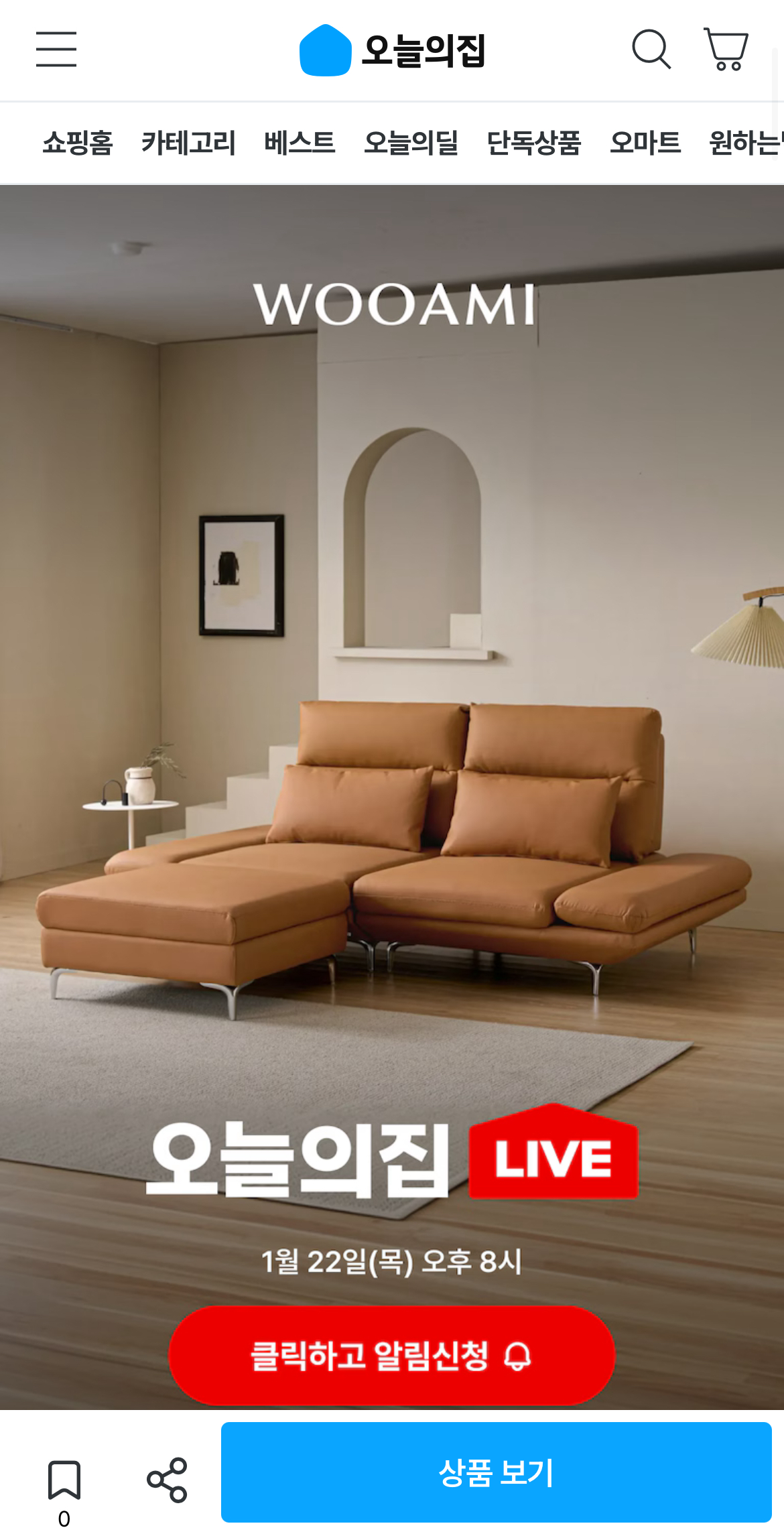 오늘의집에서 우아미가구 라이브 방송 예정이네요