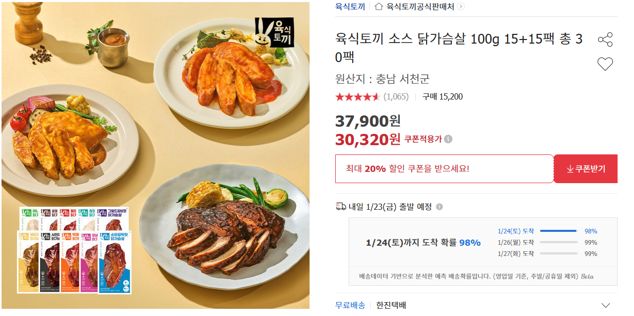 [옥션] 육식토끼 소스 닭가슴살 100g 30팩 30,320원 무배