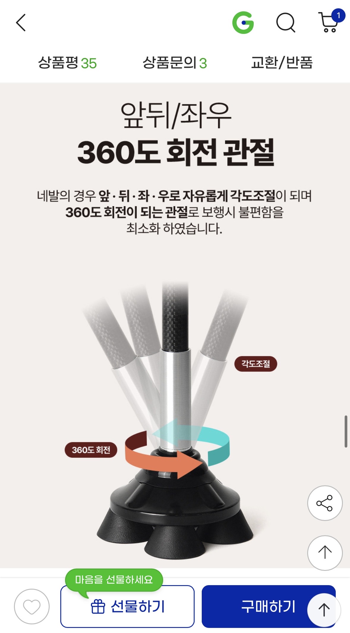 외발이랑 네발을 상황에 맞게 바꿔 쓸 수 있어서 활용도도 괜찮네요~