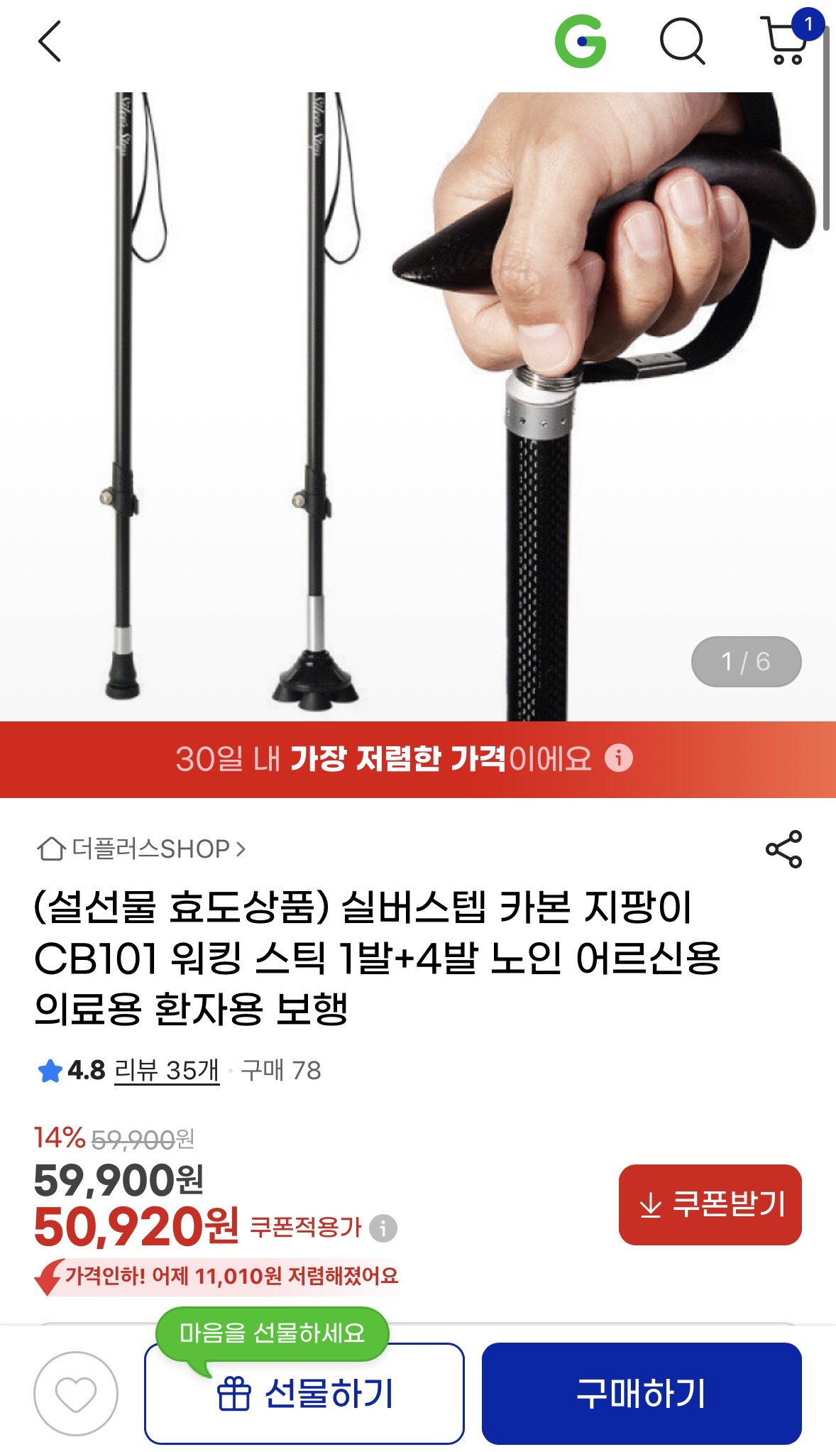 [지마켓] 카본 지팡이 CB101 워킹 스틱 1발+4발 (50,920원/무배) > 국내핫딜