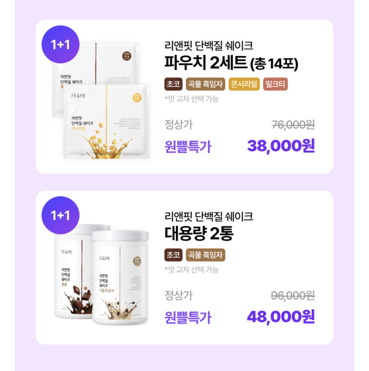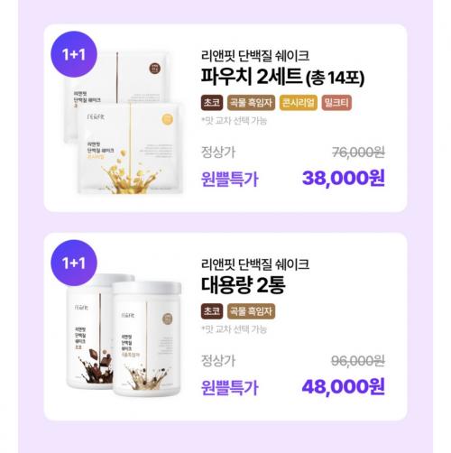 [네이버] 리앤핏 홍진경 단백질쉐이크 1+1 50% 할인(38,000원~/무배)