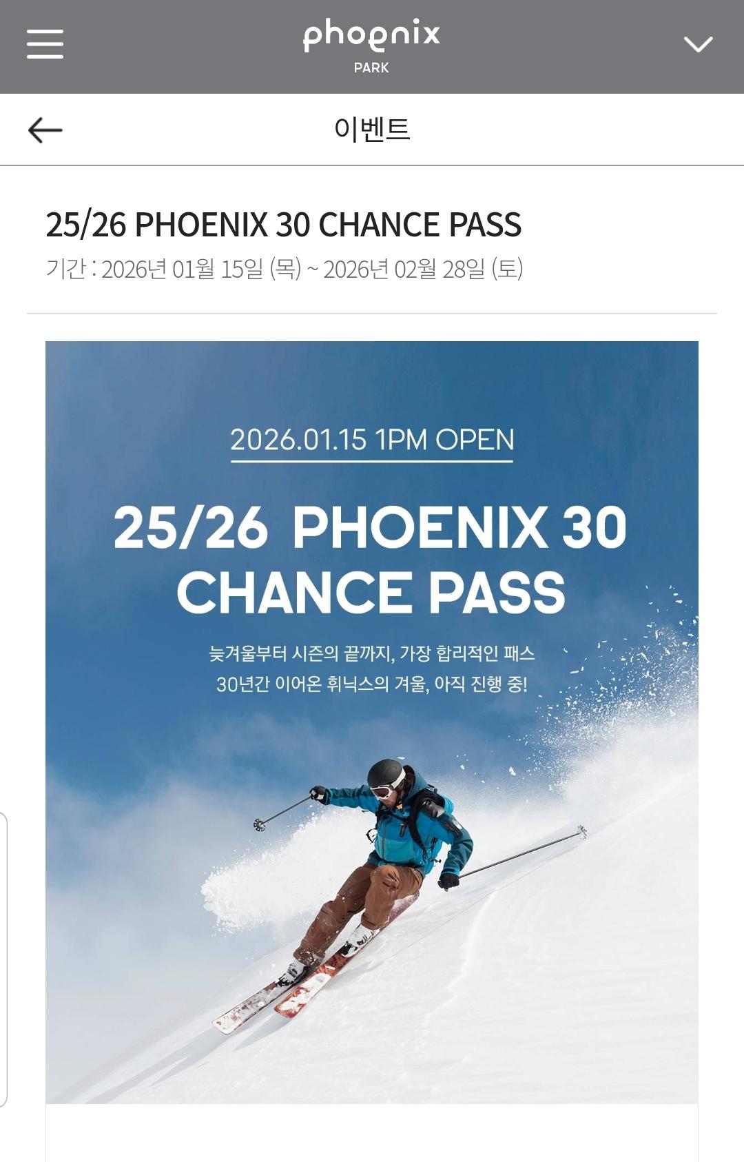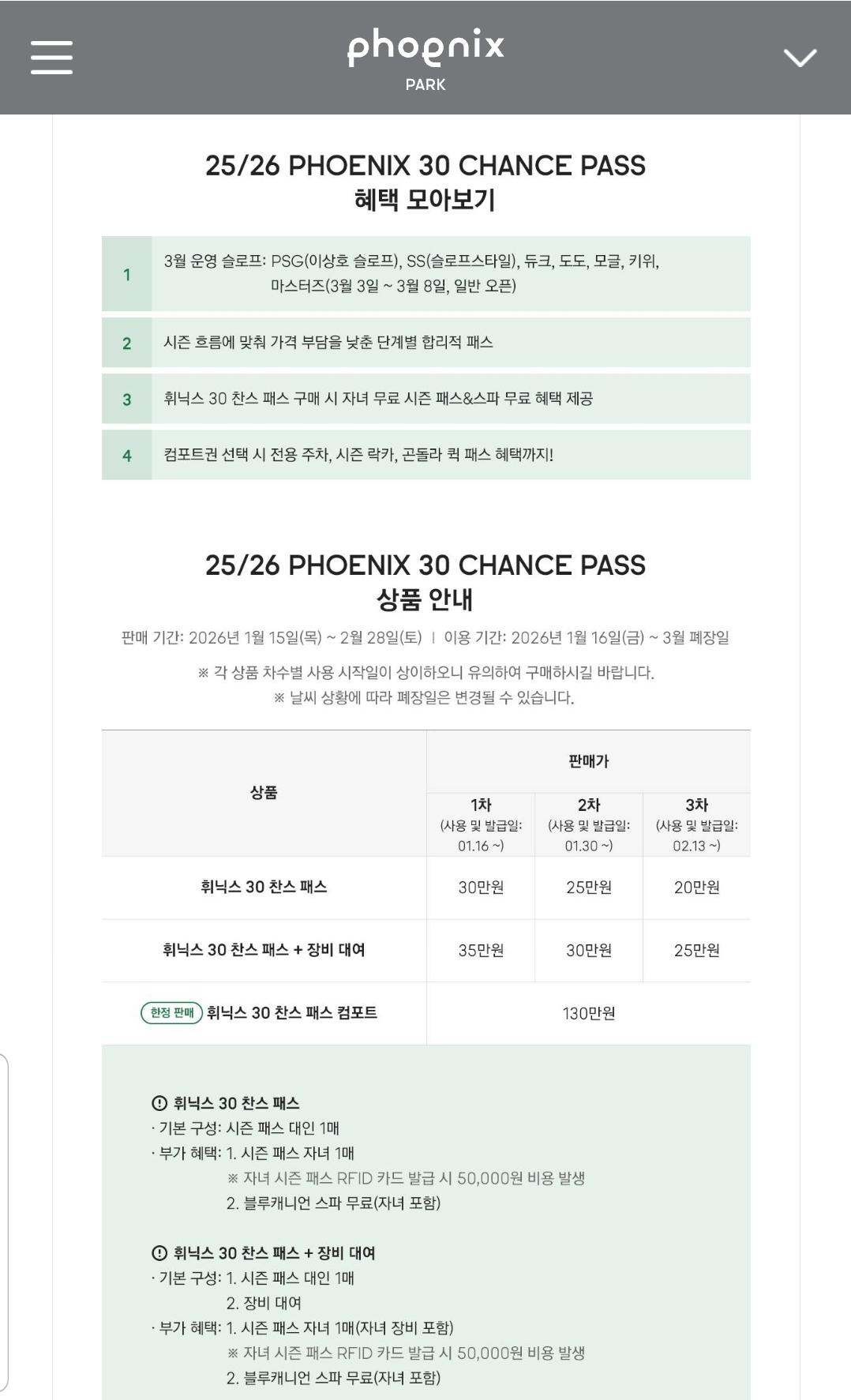 이번에 휘닉스 시즌권 보다가 30 찬스 패스가 눈에 들어오더라구요.
