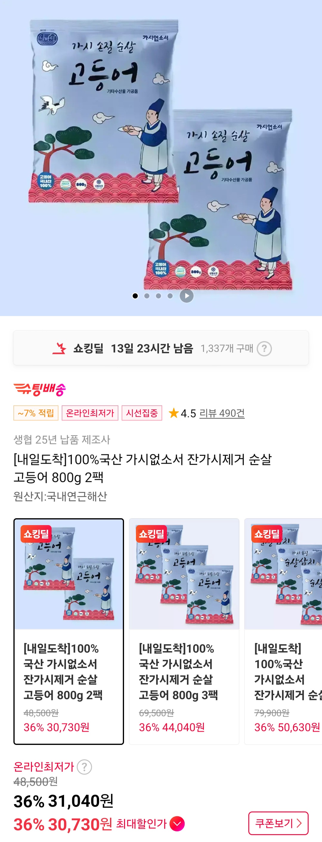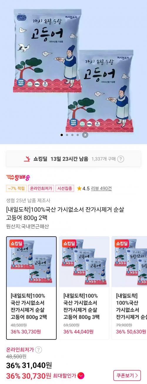 [11번가] 100%국산 가시없소서 잔가시제거 순살 고등어 800g 2팩 (30,730원/무배) > 국내핫딜