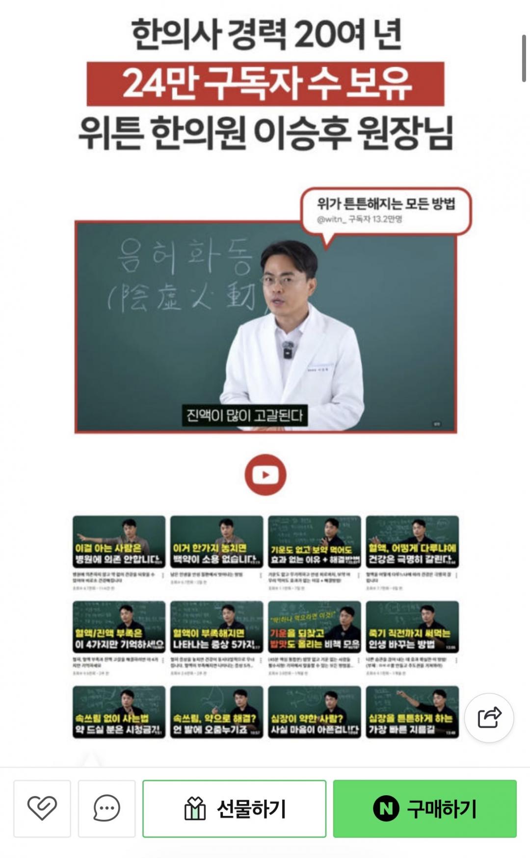 한의사가 직접 만든 브랜드인데 유튜브 구독자 24만명 되시는 분이네요