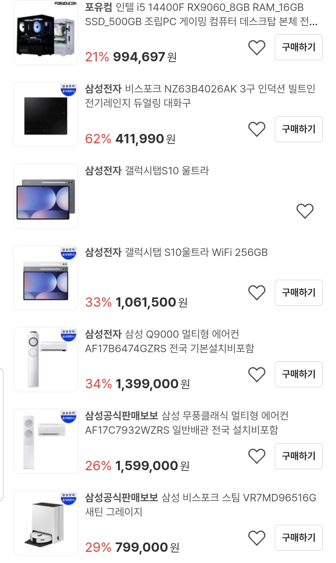 이외에도 갤럭시탭s10 울트라나 삼성 스팀 비스포크 로봇청소기등 다른 물품도 꽤 많습니다.