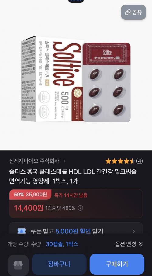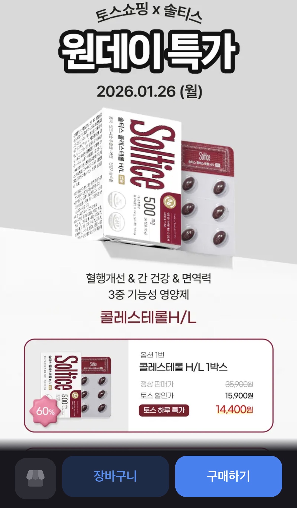 토스쇼핑 하루특가로 솔티스 콜레스테롤 H/L 올라왔네요
