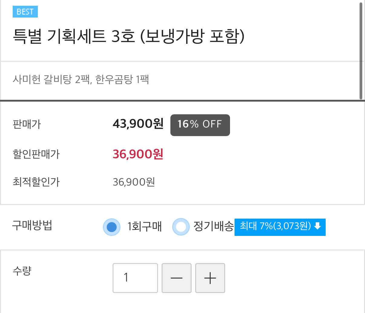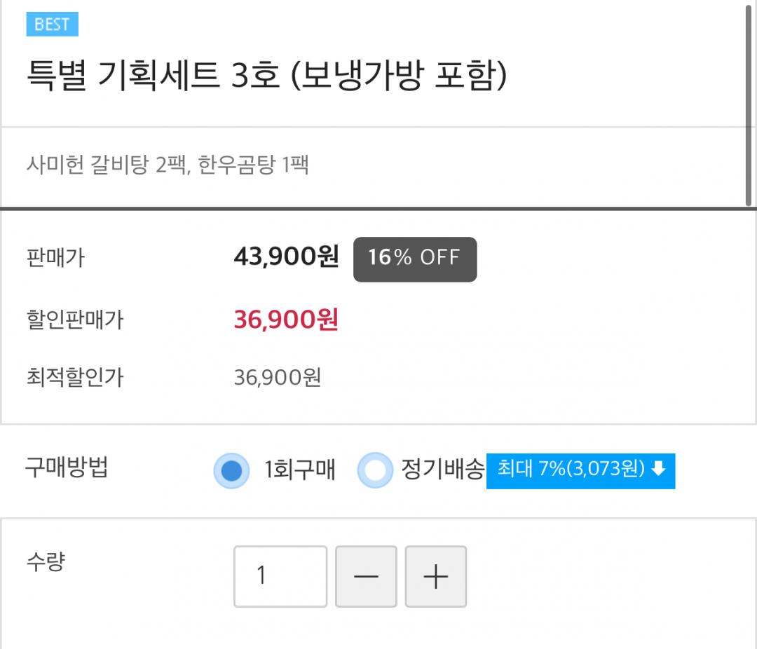 사미헌에서 갈비탕 2팩, 한우곰탕 1팩, 보냉가방 포함 해서 36,900원로 세트 특가 나왔네요