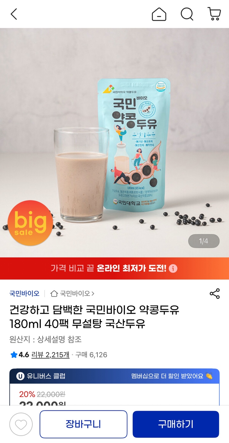 [지마켓] 무첨가 무설탕 건강하고 담백한 약콩두유 180ml 40팩 (18,260원/무배) > 국내핫딜