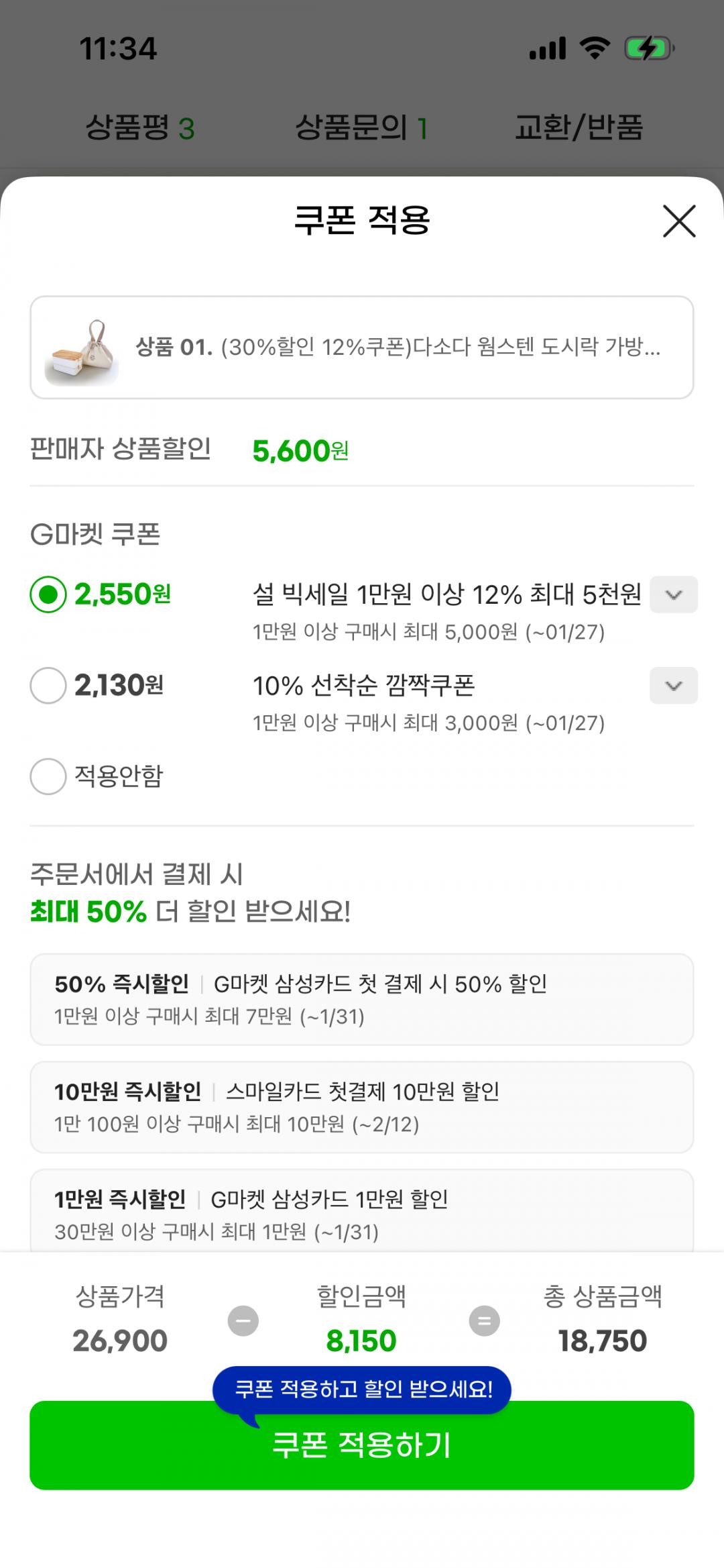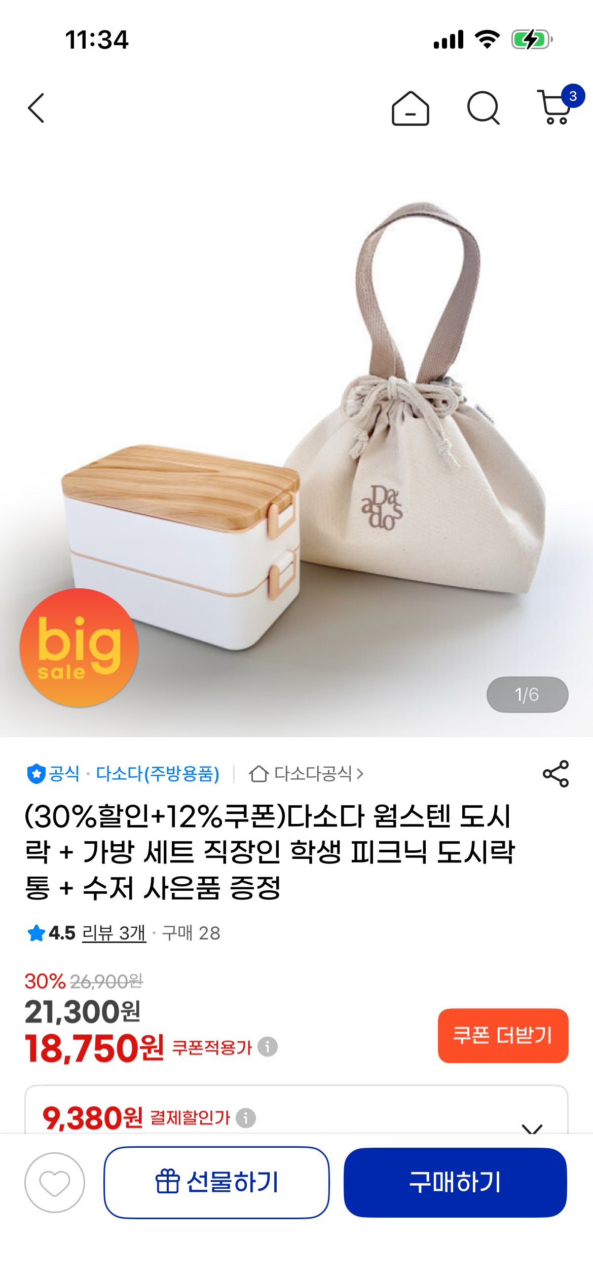 [지마켓] 다소다 웜스텐 도시락 + 가방 세트 (18,750원/무료)