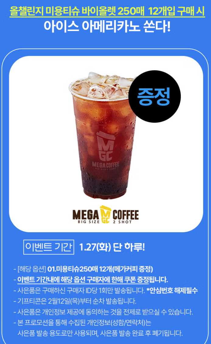 오늘안에만 구매하면 메가커피 커피쿠폰도 주니까