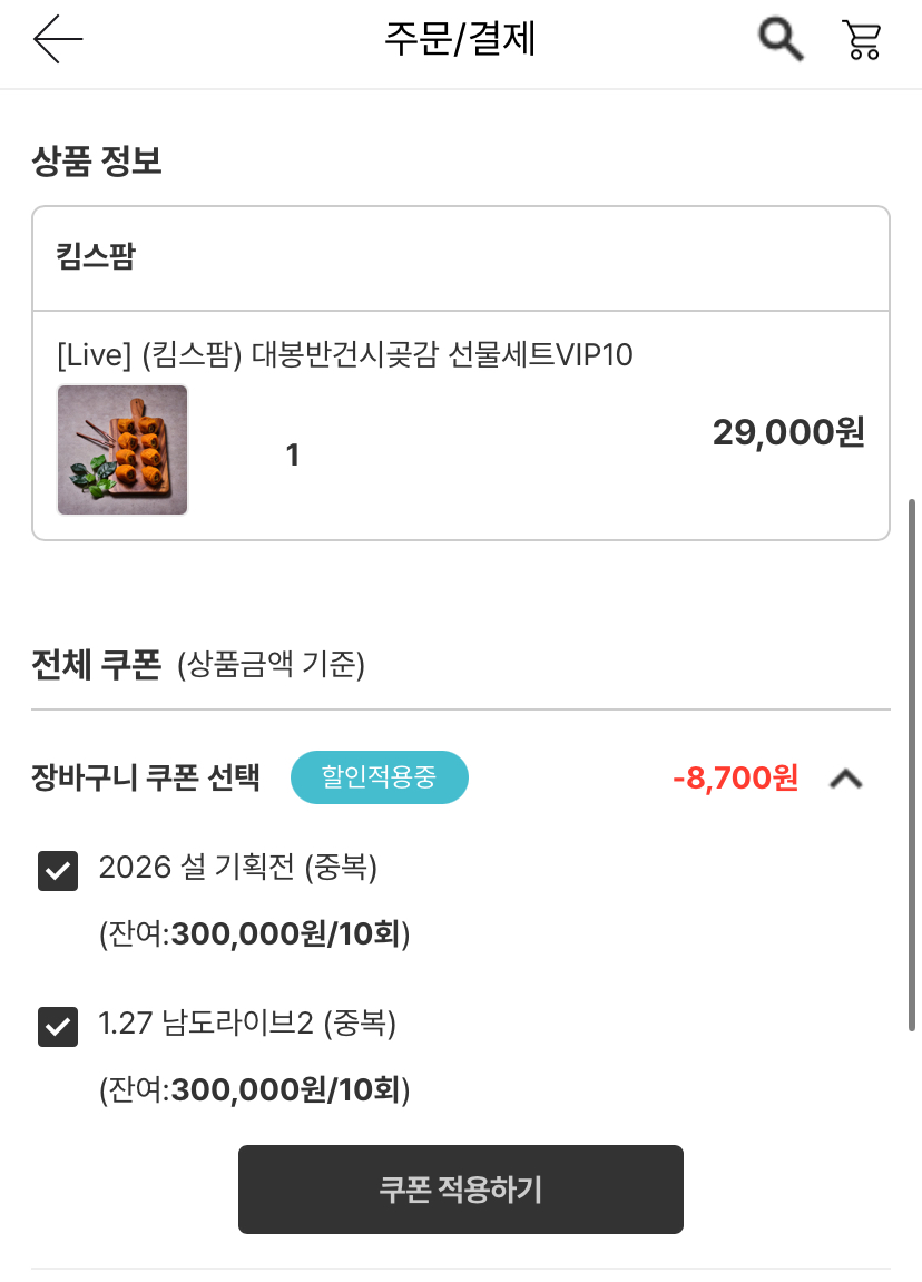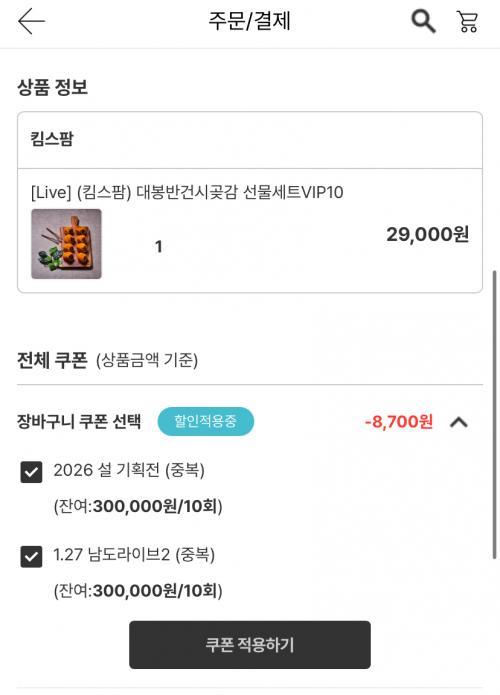 [남도장터] 대봉반건시 곶감 10EA 선물세트 (20,300원/무료)