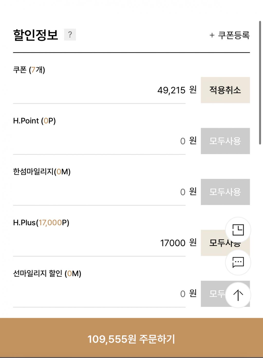 쿠폰, 에센셜20%쿠폰과 포인트 모두 적용시