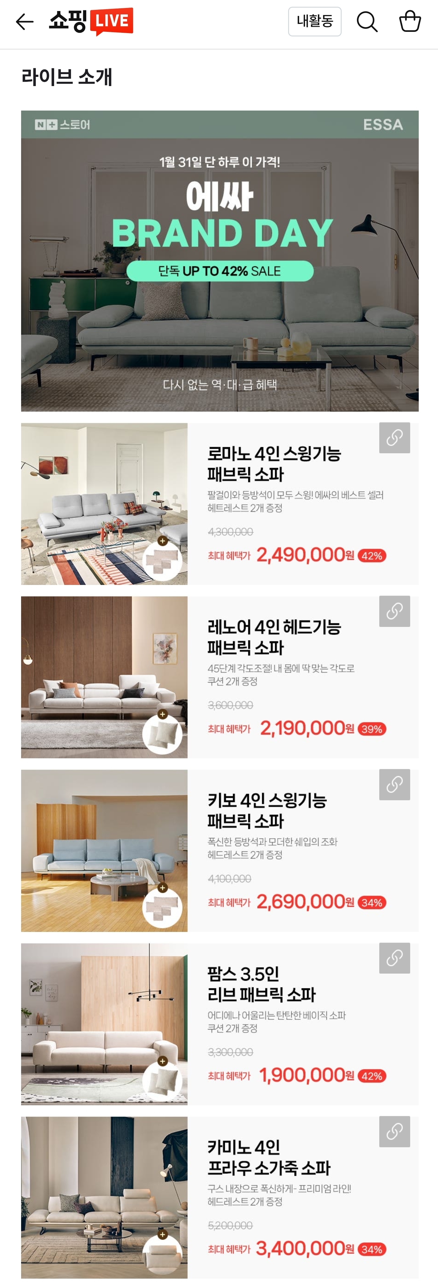 ​1시간뒤에 에싸 네이버라이브 하네요 최대 42% 할인하고 사은품도 많이 줍니다