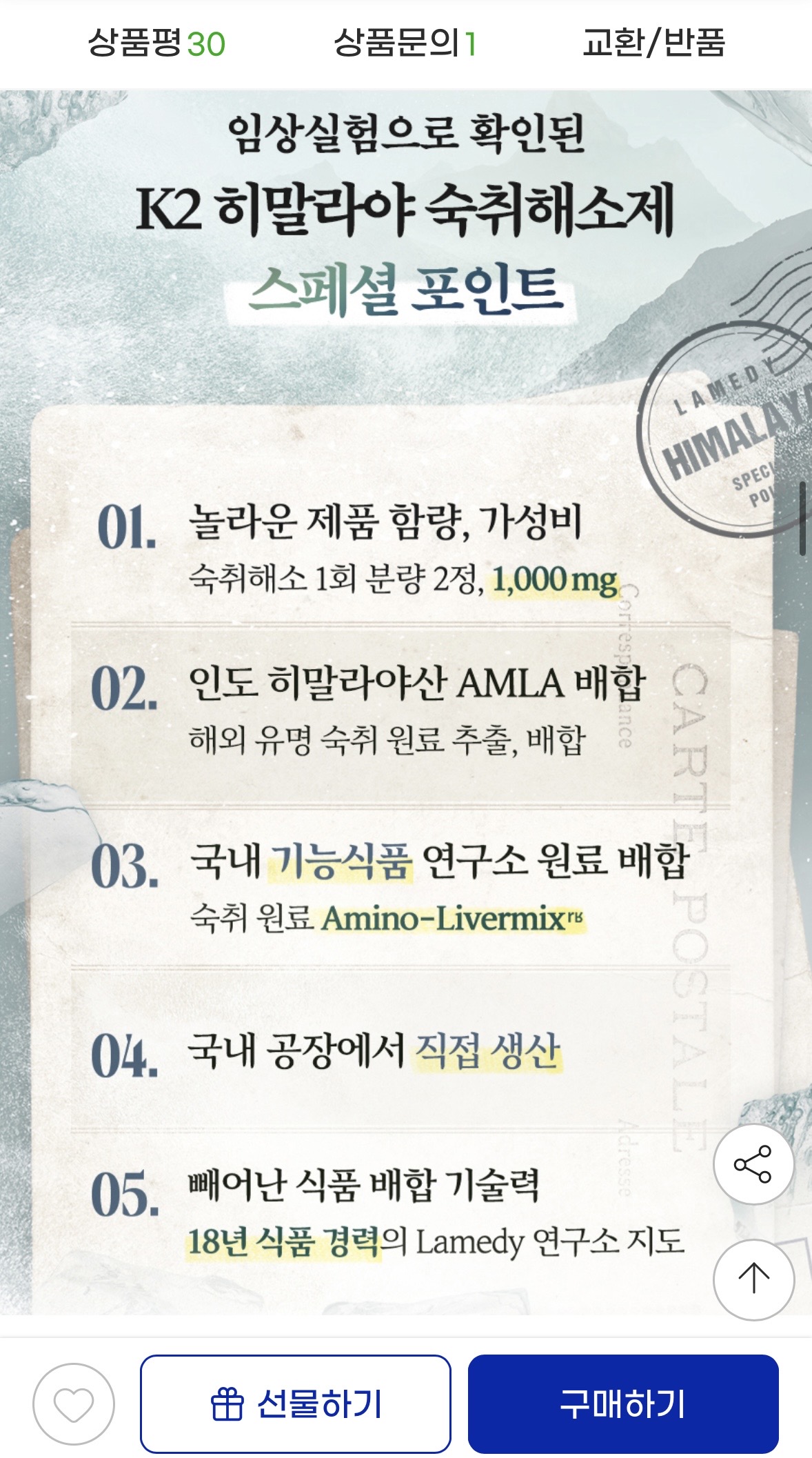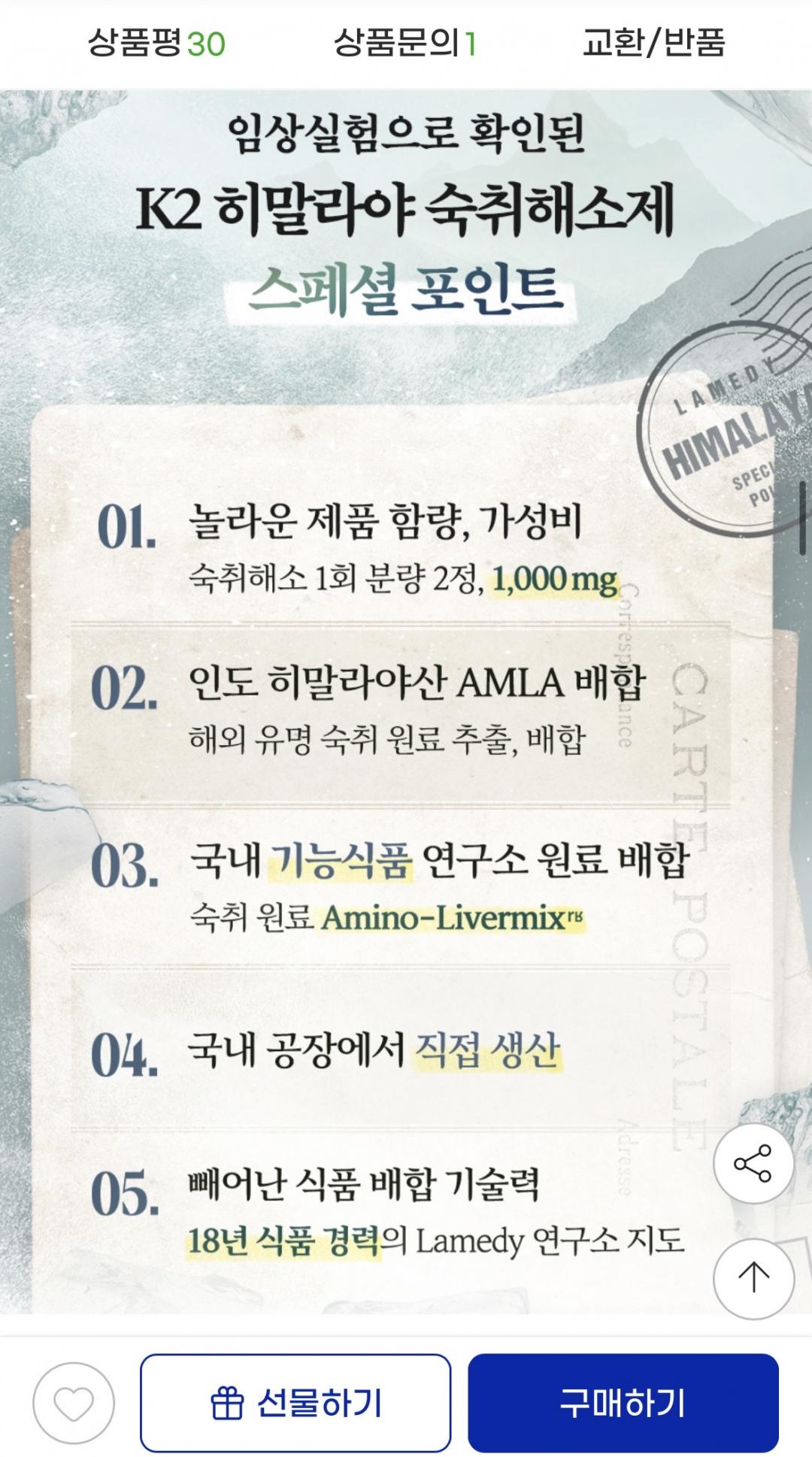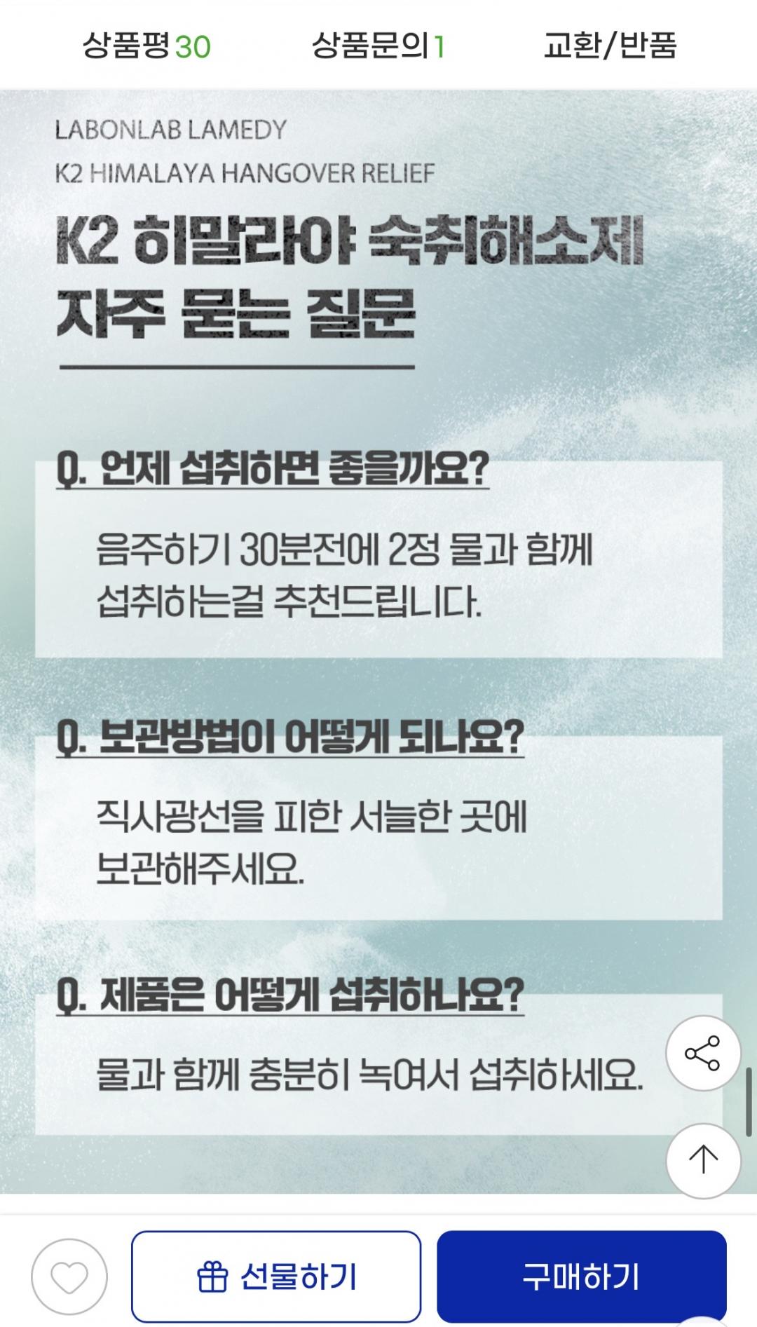 연초 회식 많은 시즌에 챙기기 좋은 랩온랩 고농축 K2 히말라야 숙취해소제입니다.