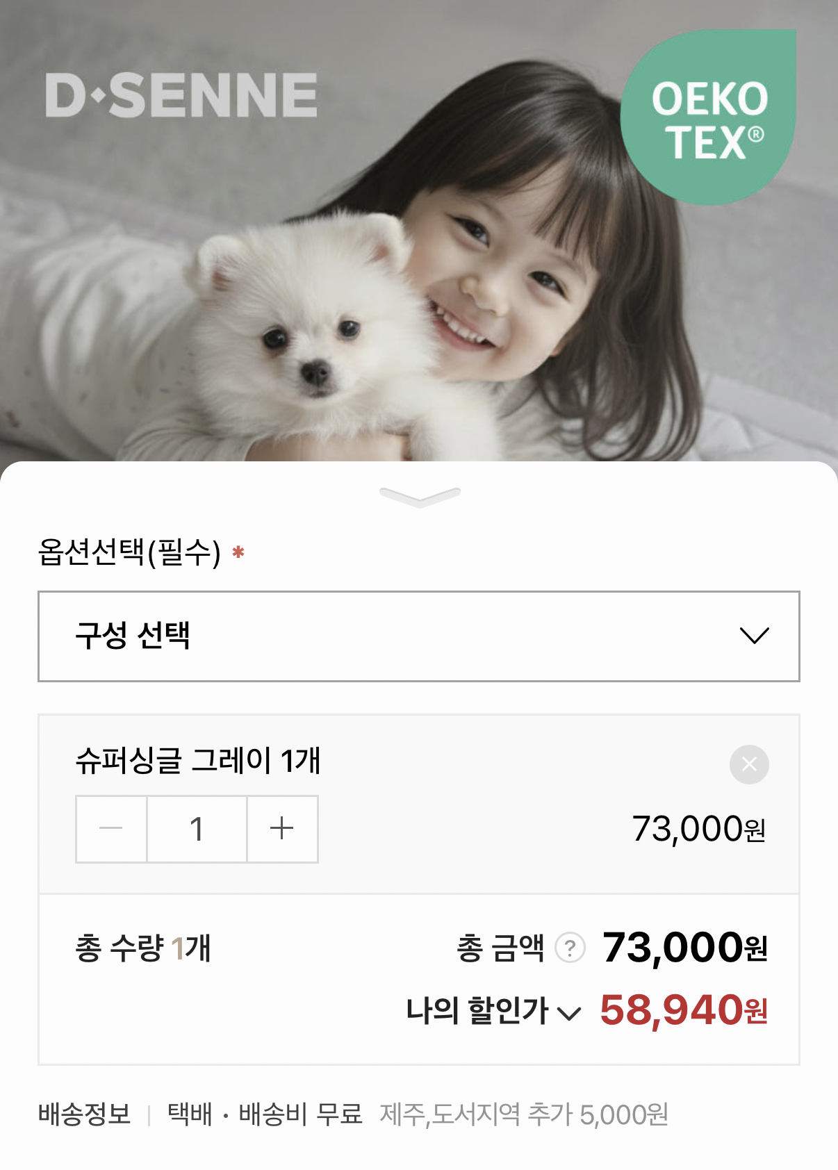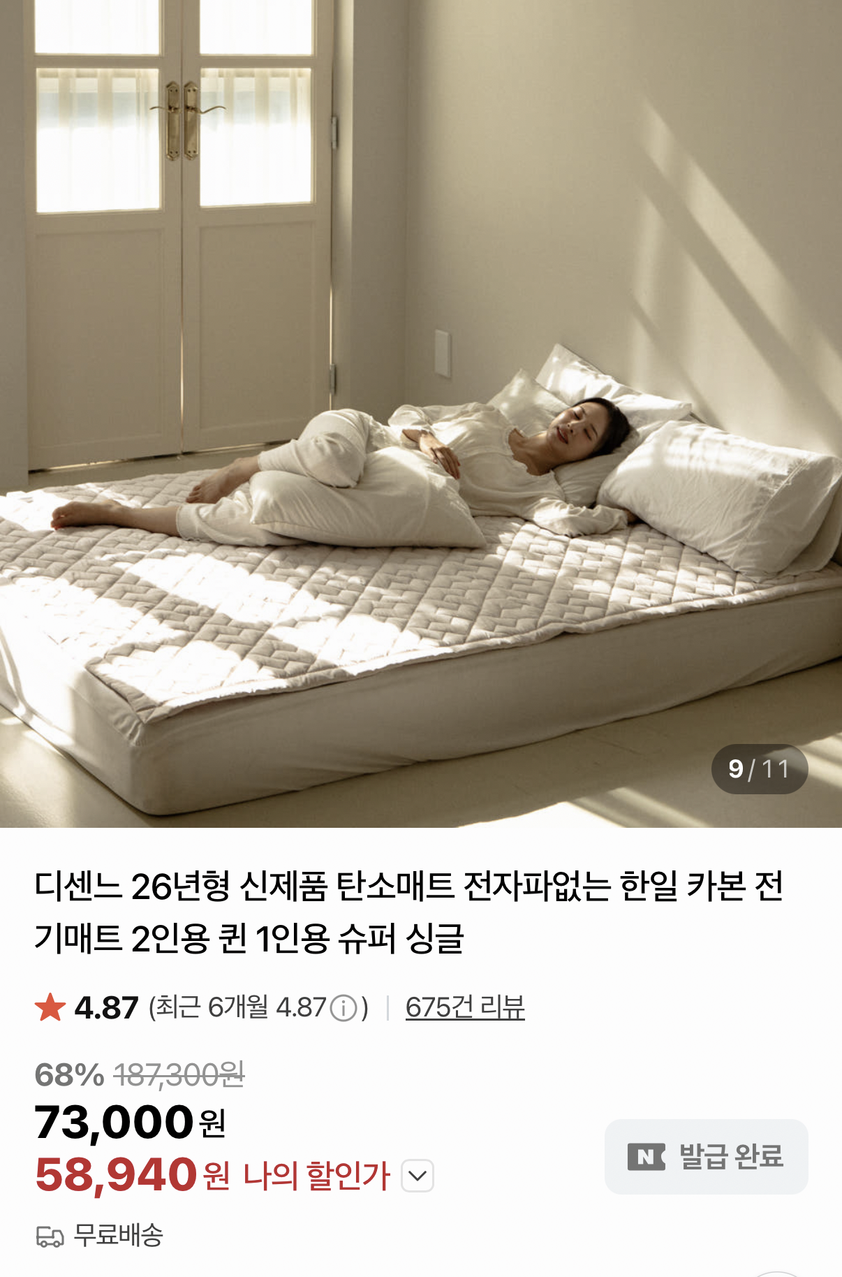 [네이버] 디센느 한일 탄소매트 SS·Q (58,940원~/무료)