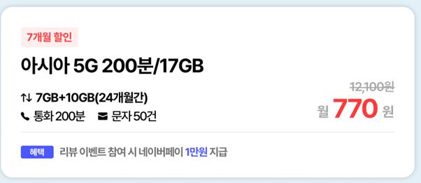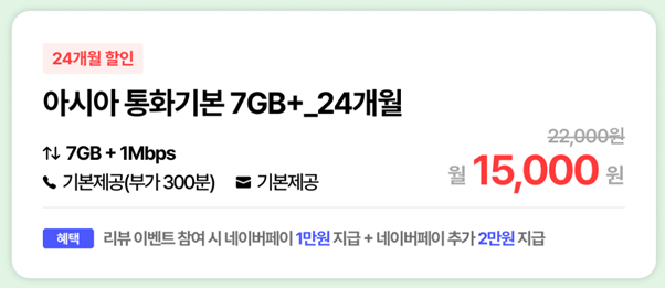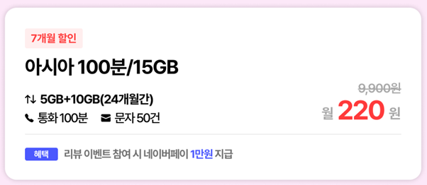 젤 괜찮아보이는 건 데이터 15GB 7개월 220원 요금제입니다