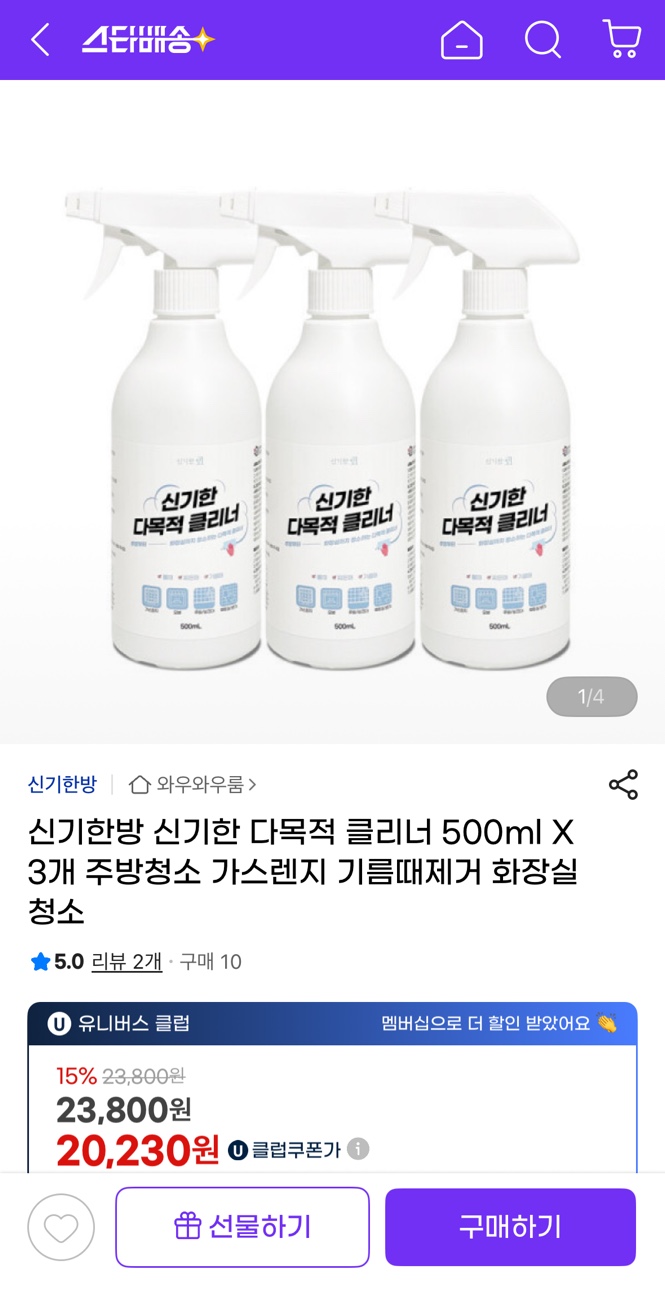 [지마켓] 신기한방 다목적 클리너 500ml 3개 (23,800원/무배) > 국내핫딜