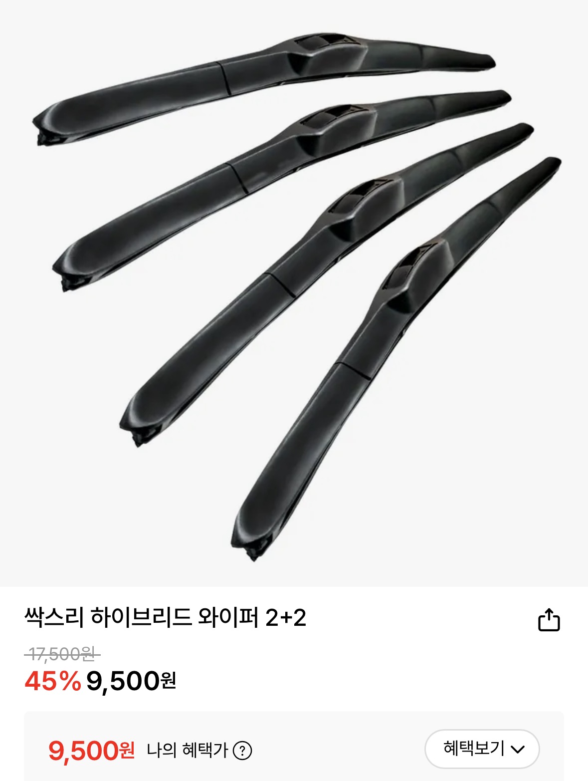 [롯데온] 싹스리 하이브리드 와이퍼 2+2 (9,500원/무료) > 국내핫딜