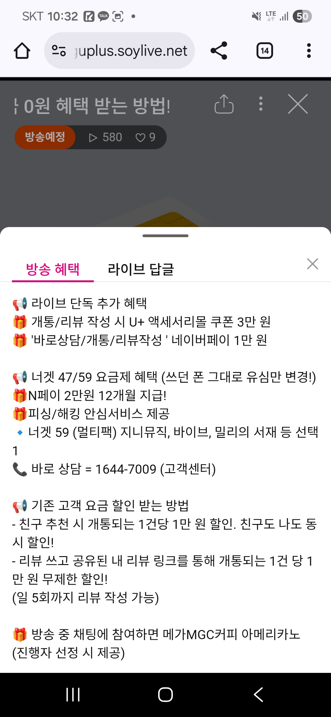 오늘 라이브 혜택으로 유심비 무료고 3만쿠폰, 1만포인트 추가로 줍니다.