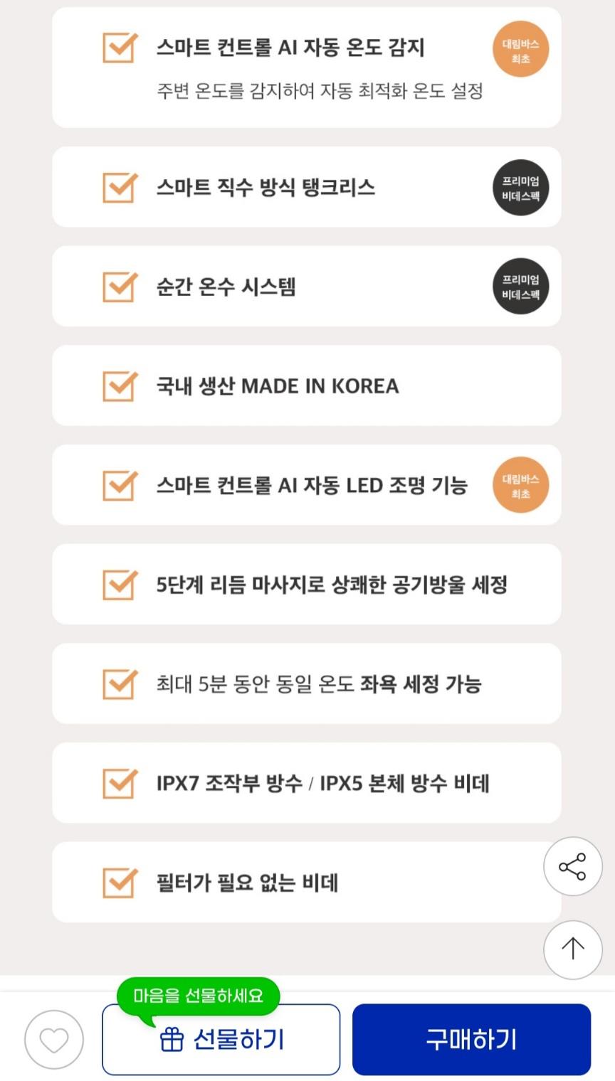[지마켓] AI스마트 컨트롤 완전 직수 순간온수 방수 리모컨 비데 (173,700원 / 무료배송) > 국내핫딜