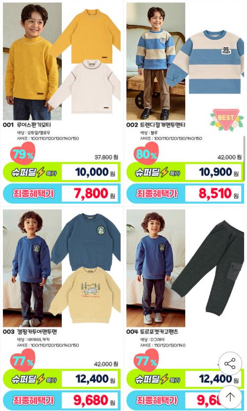 점퍼나 티셔츠 팬츠 상하복 원피스 기모레깅스 등 다양합니다