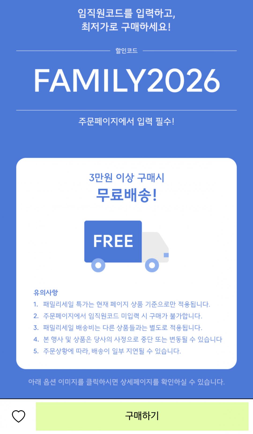 주문 시 임직원 코드 입력해야 구매 가능한 점은 참고하셔야 합니다