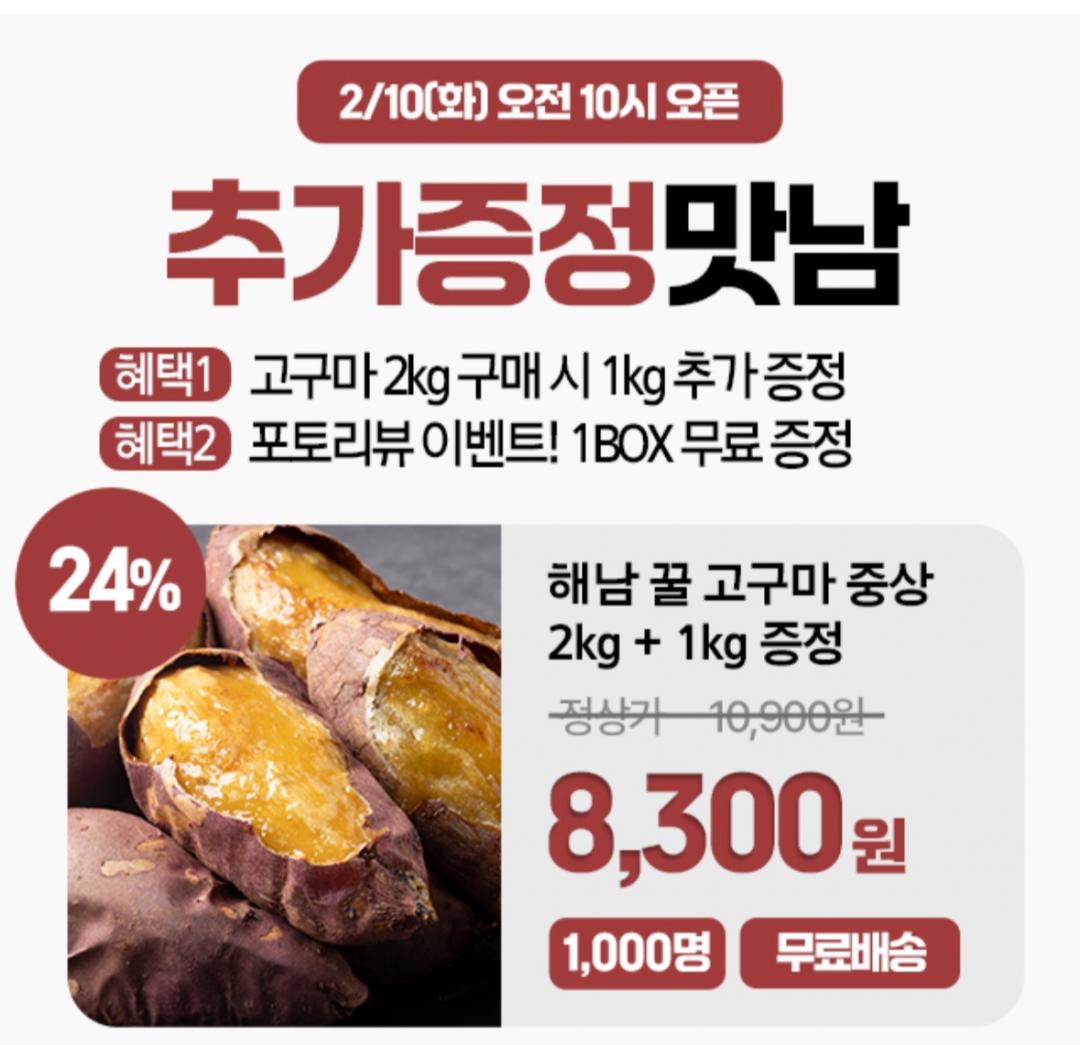 해남 고구마 2kg 주문하면 1kg 추가로 더 주고