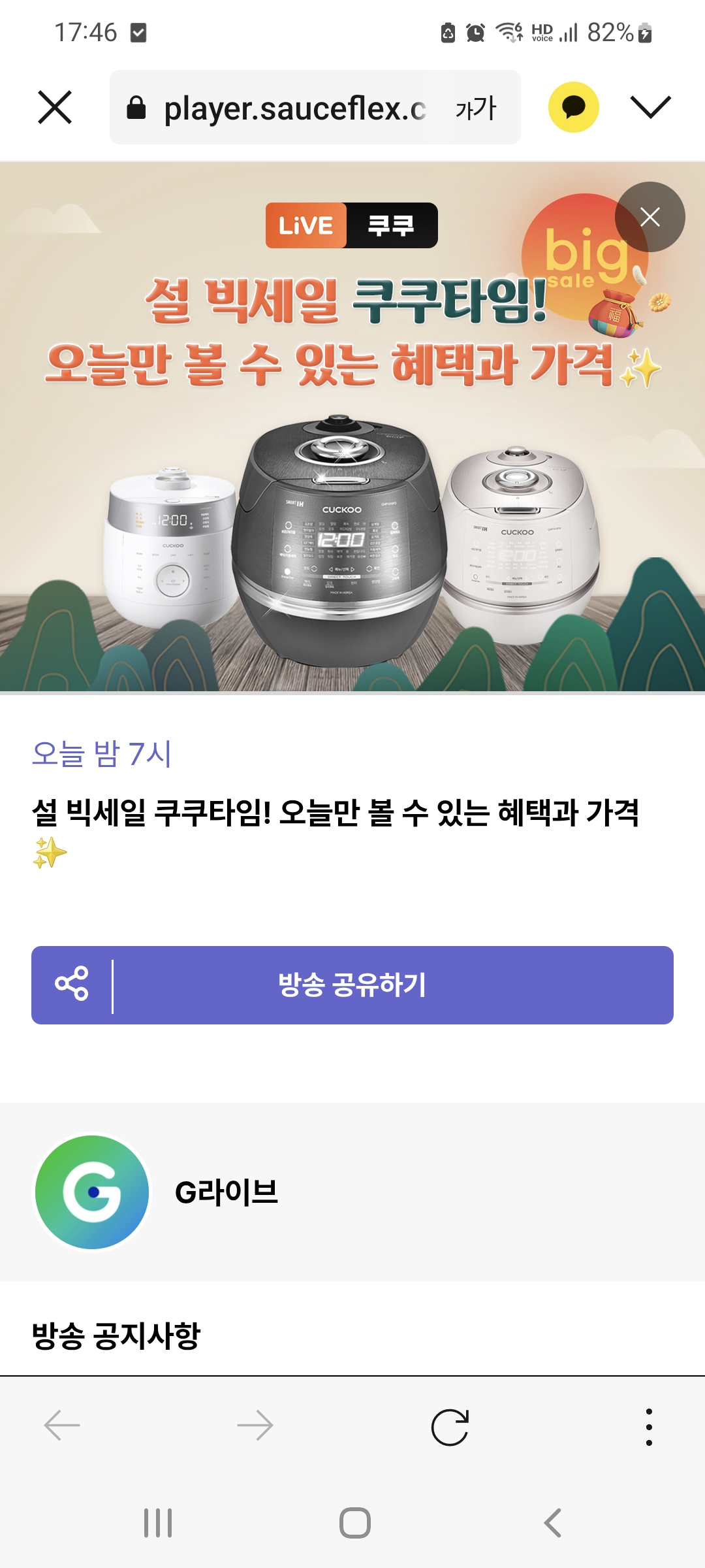 지마켓에서 7시에 쿠쿠 라이브 합니다